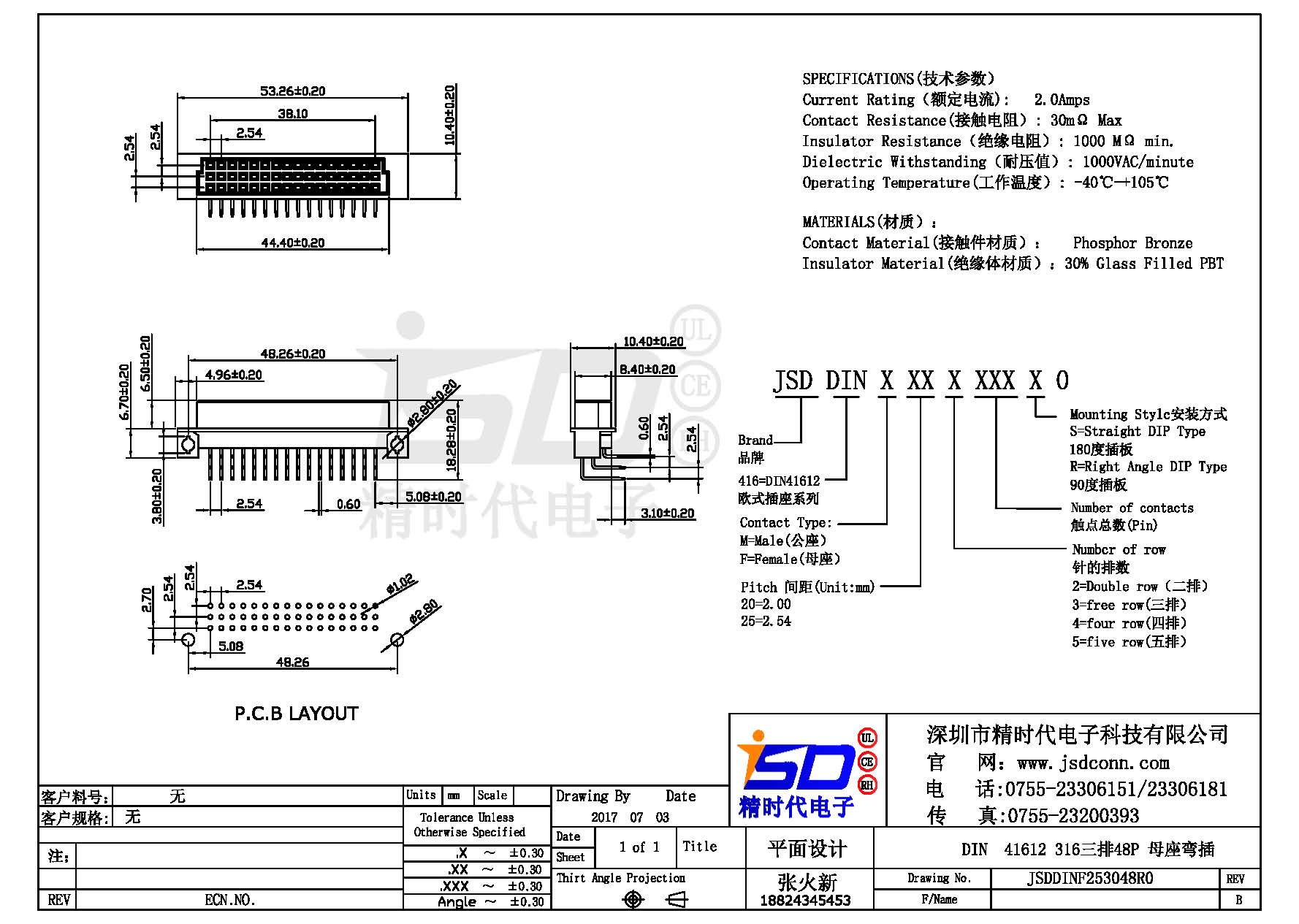 DIN 41612 Connectors Female  Pitch:2.54mm 48 PIN (Triple Row)Right Angle DIP Solder sample