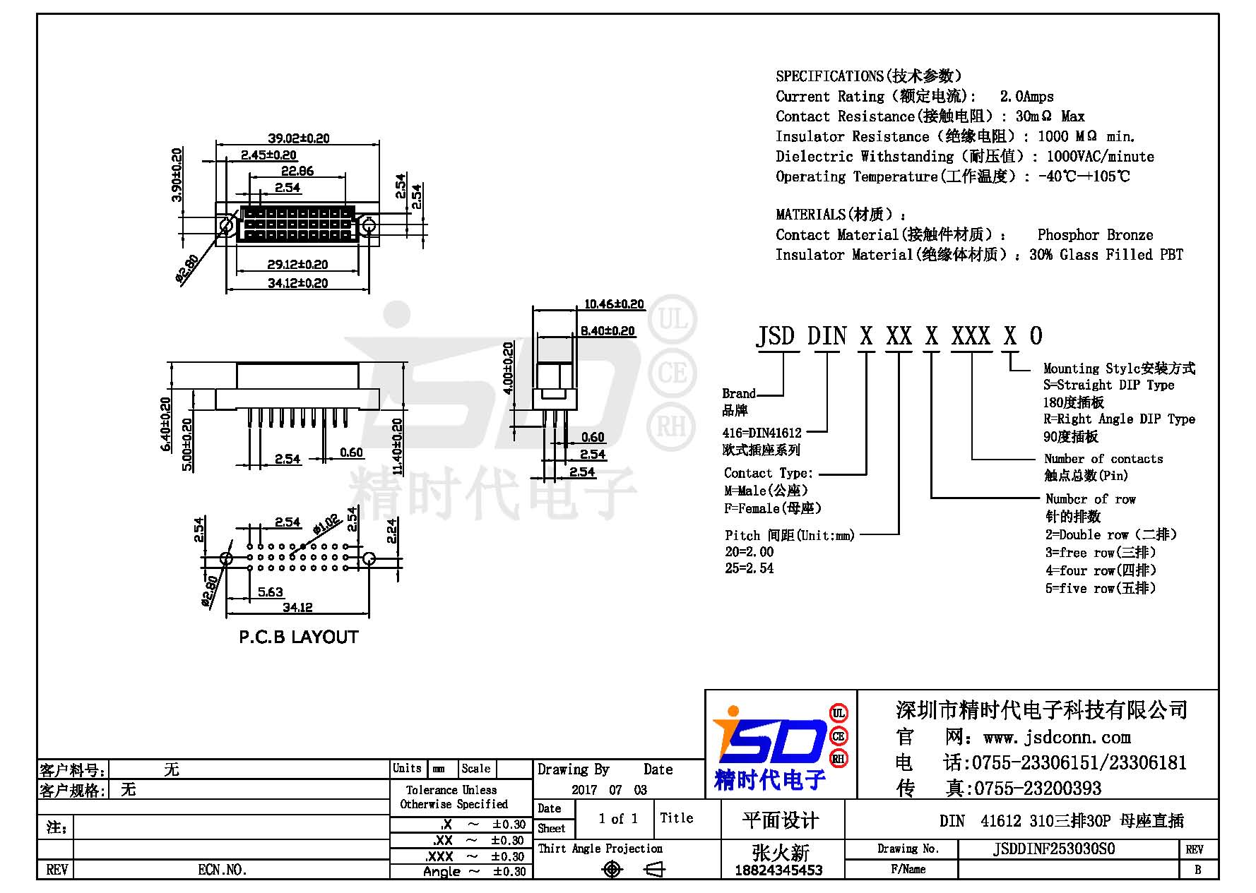 DIN 41612 Connectors Female Pitch:2.54mm 30 PIN (Triple Row)Straight DIP Solder sample