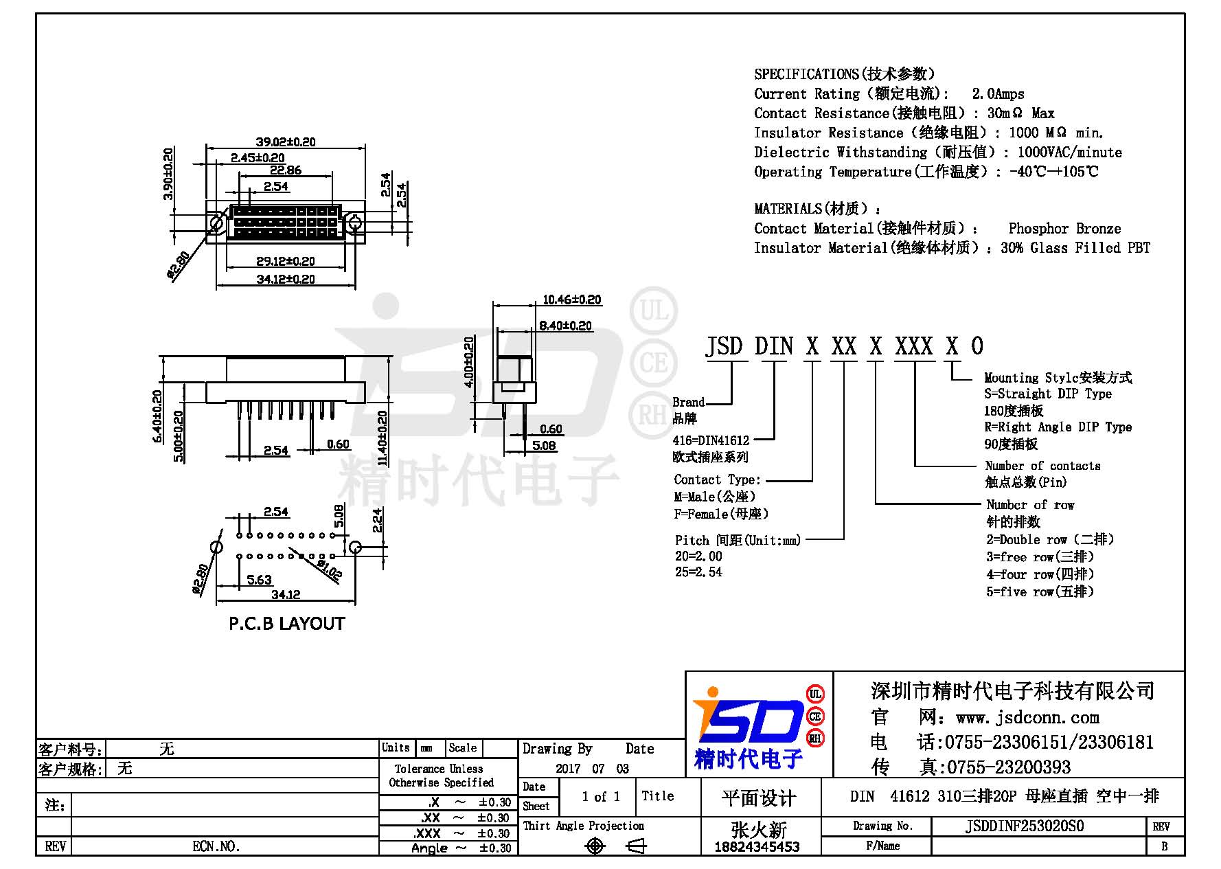 DIN 41612 Connectors Female Pitch:2.54mm 20 PIN (Triple Row)Straight DIP Solder sample