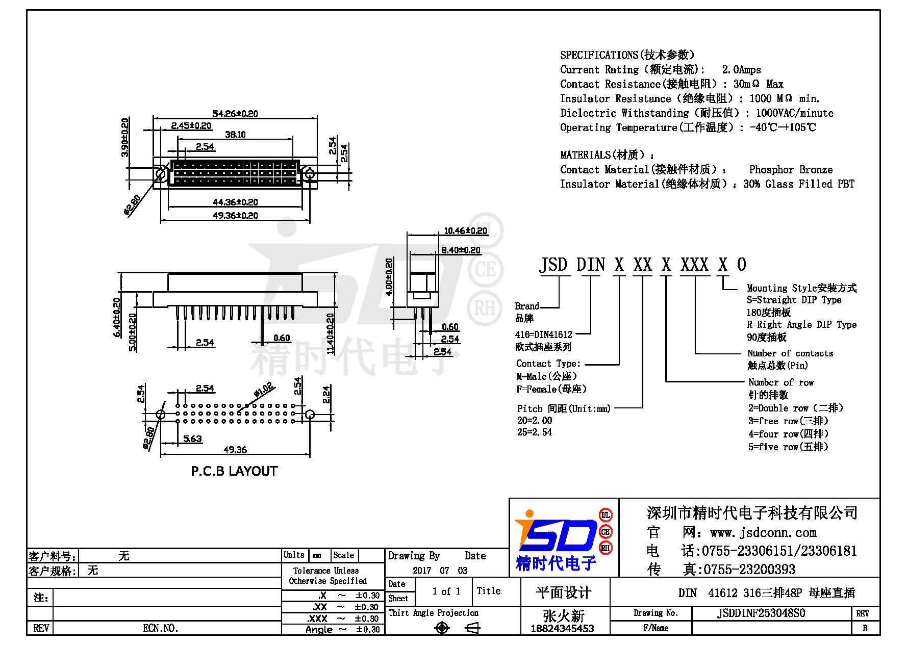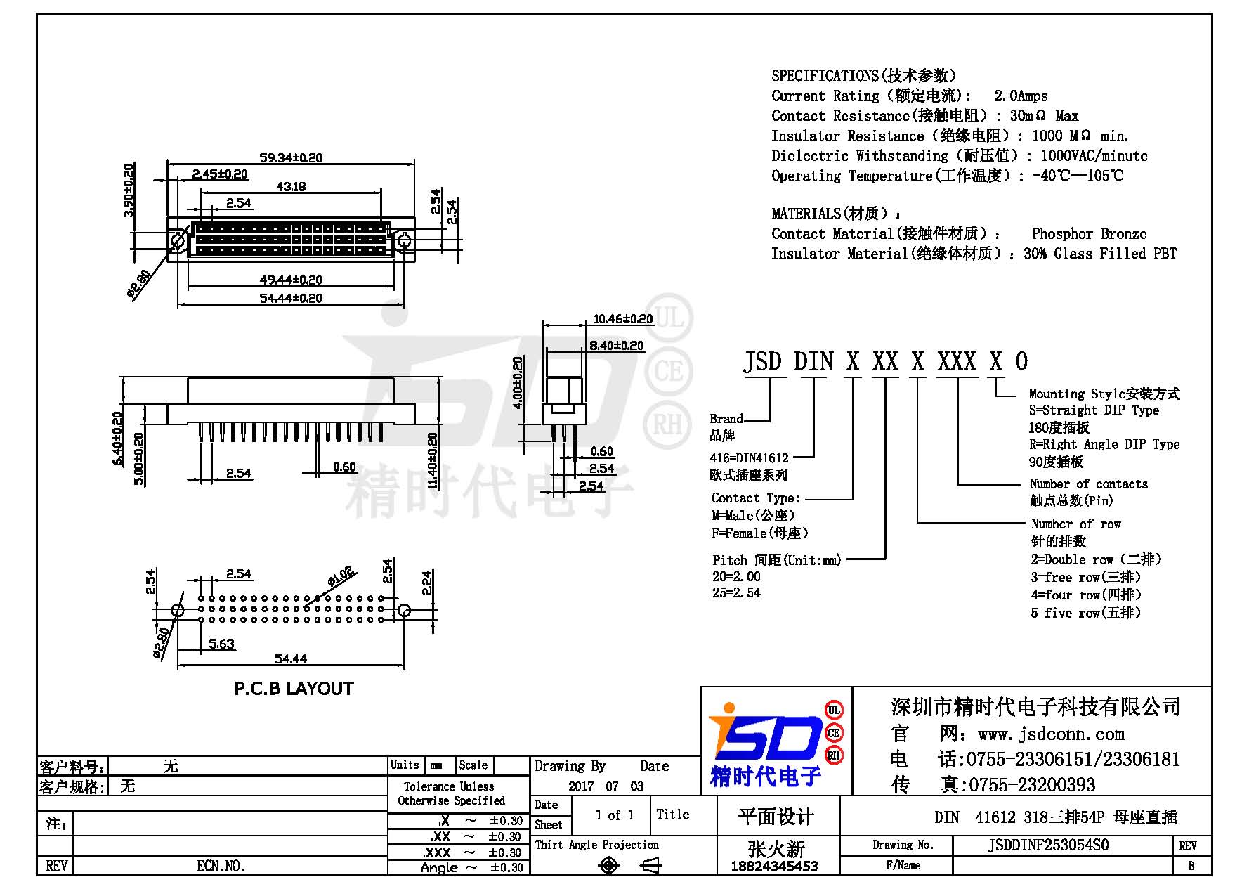 DIN 41612 Connectors Female Pitch:2.54mm 54 PIN (Triple Row)Straight DIP Solder sample
