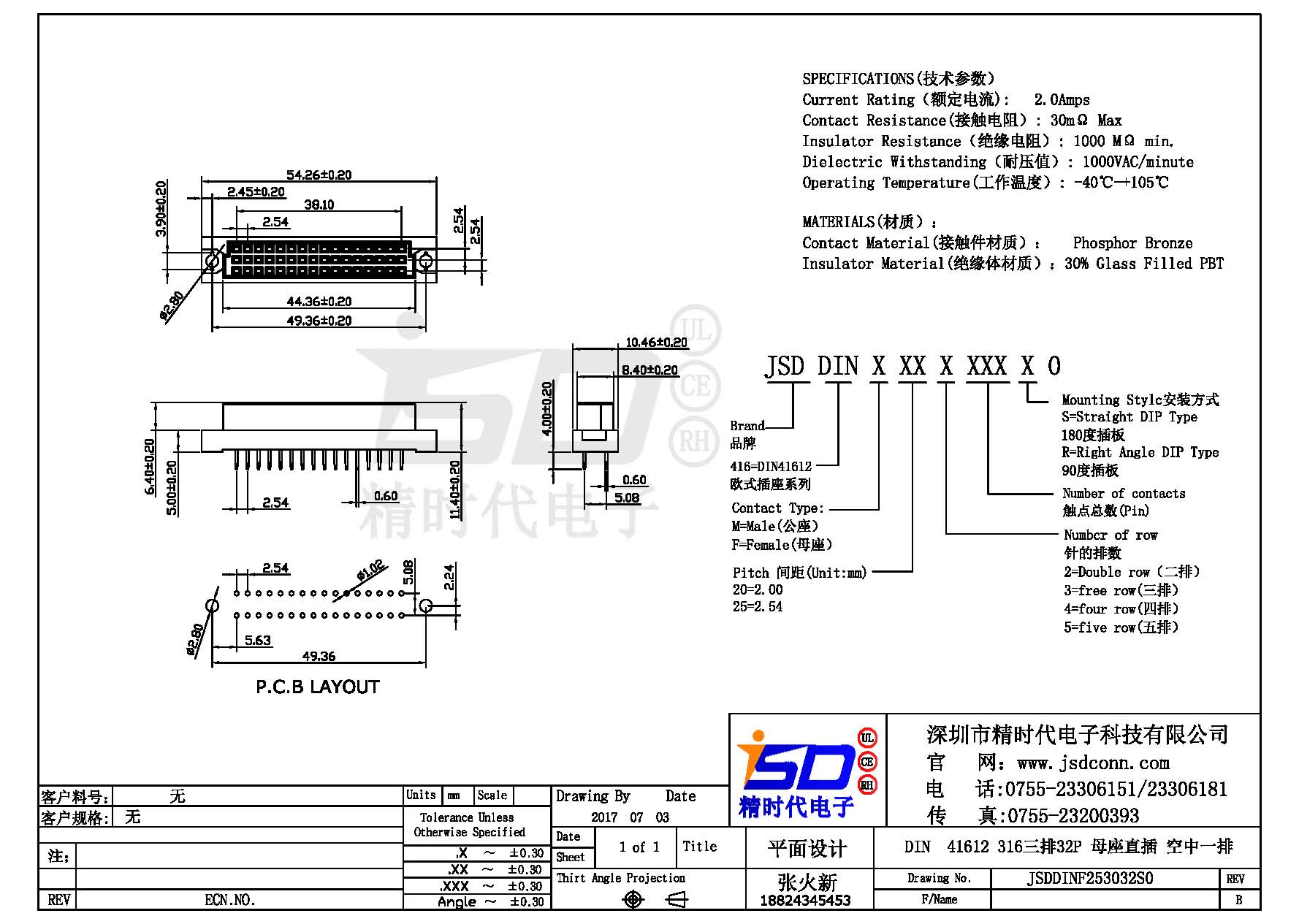 DIN 41612 Connectors Female Pitch:2.54mm 32 PIN (Triple Row)Straight DIP Solder sample