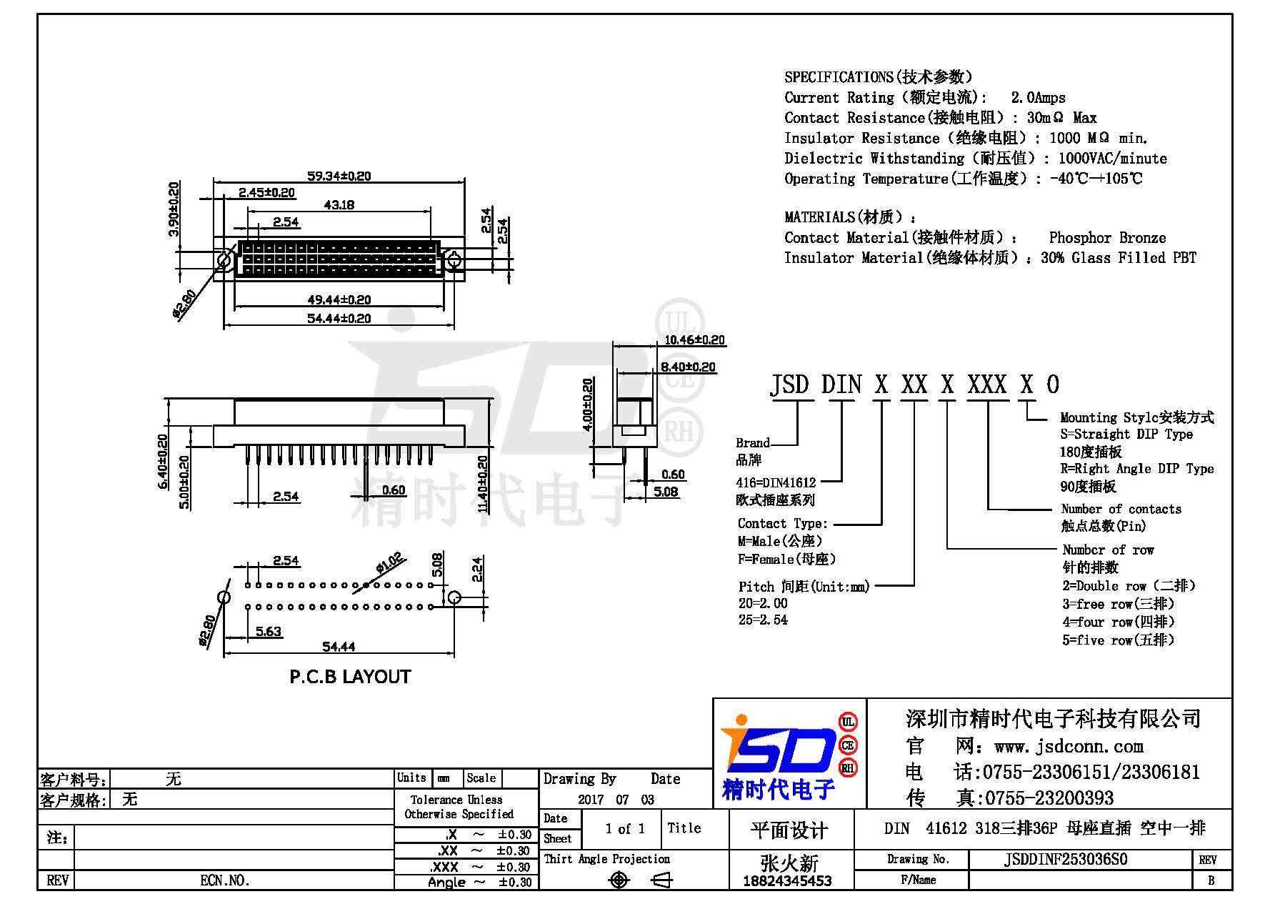 DIN 41612 Connectors Female Pitch:2.54mm 36 PIN (Triple Row)Straight DIP Solder sample
