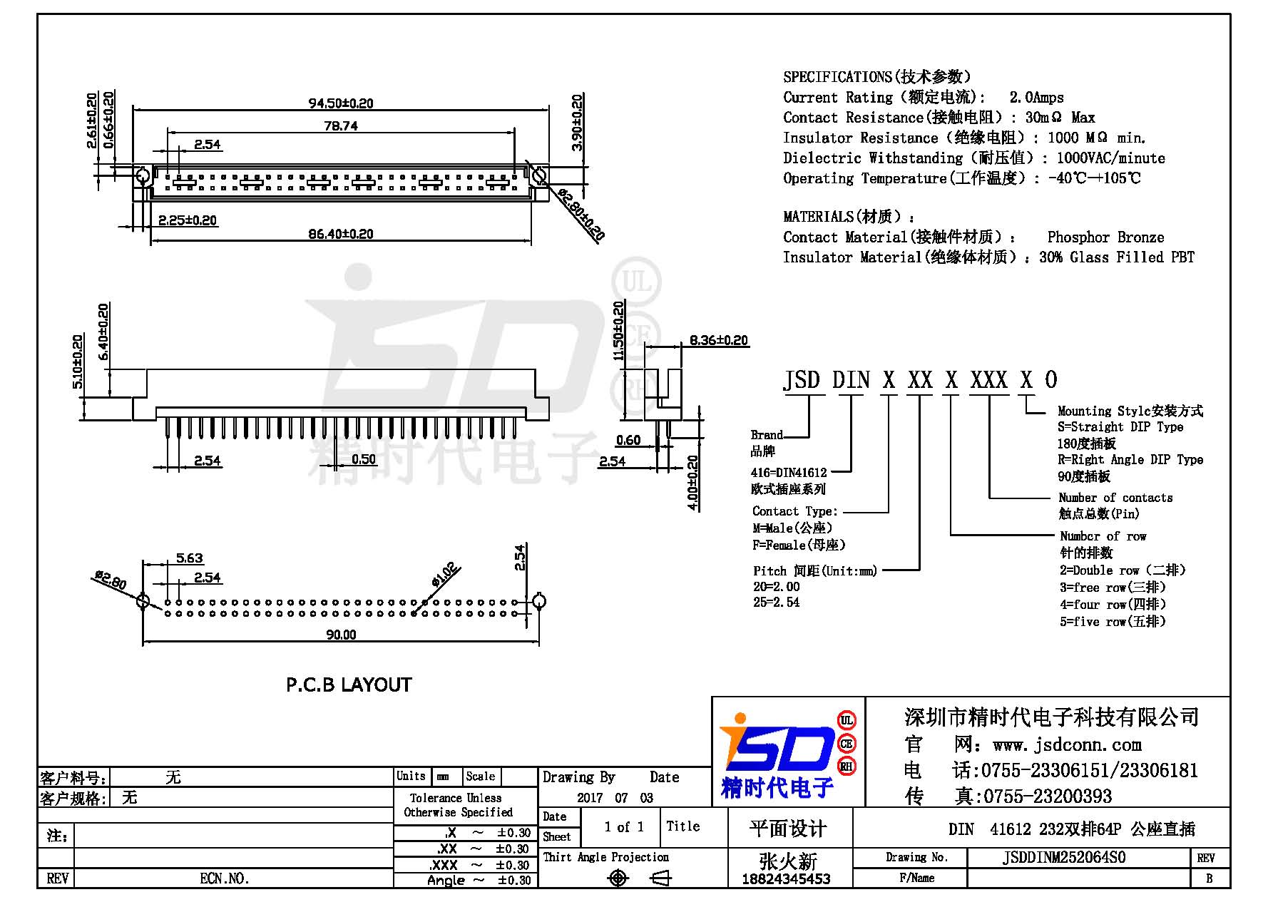 DIN 41612 Connectors Male Pitch:2.54mm 64 PIN |