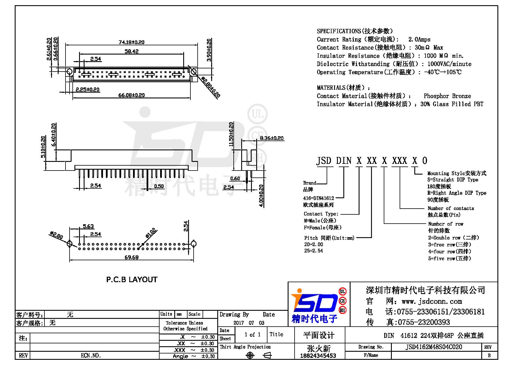 DIN 41612 Connectors Male Pitch:2.54mm 48 PIN |