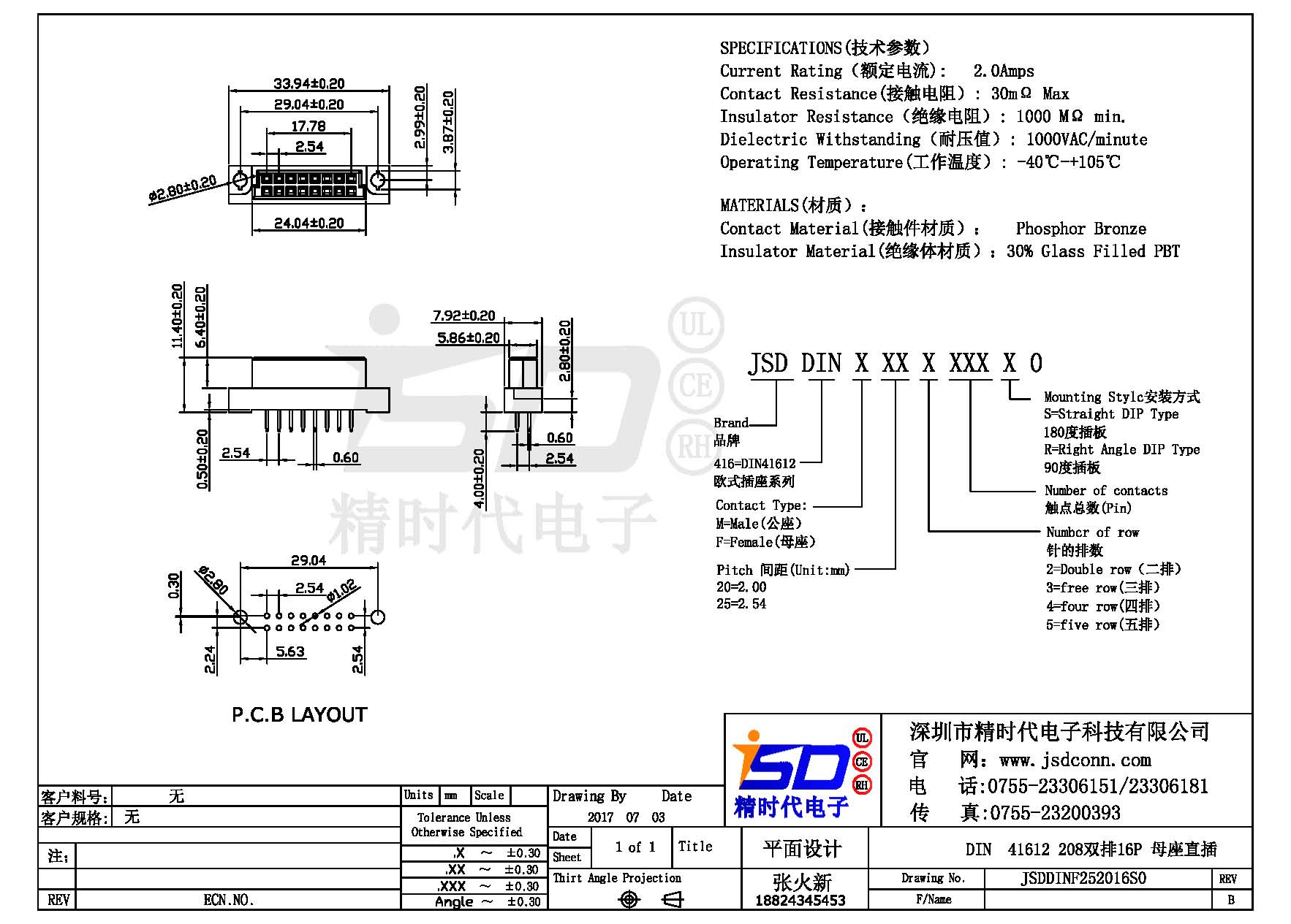 DIN 41612 Connectors Female Pitch:2.54mm 16 PIN |