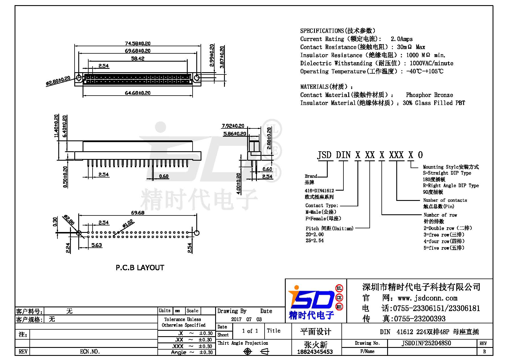 DIN 41612 Connectors Female Pitch:2.54mm 48 PIN |