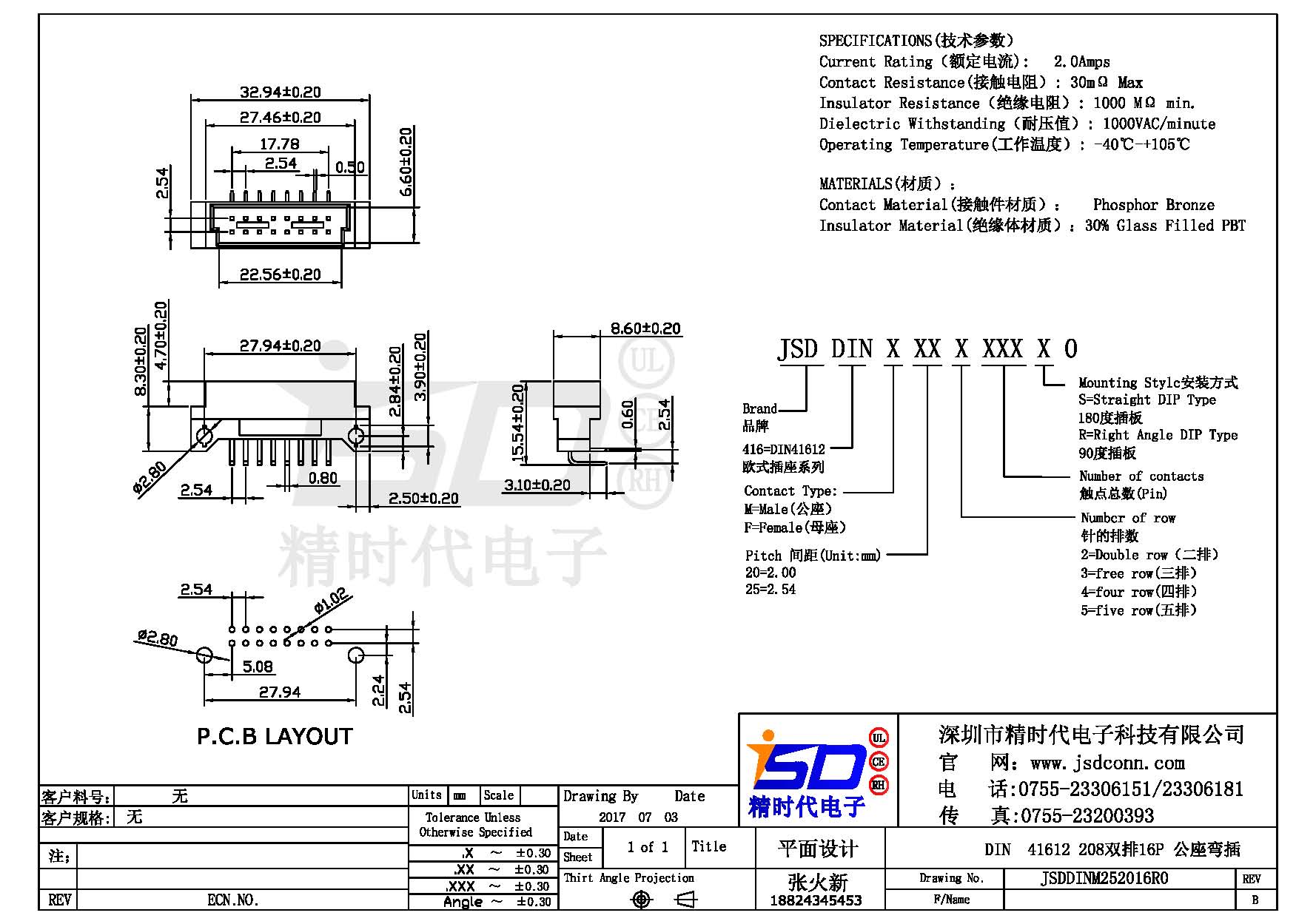 DIN 41612 Connectors Male Pitch:2.54mm 16 PIN |