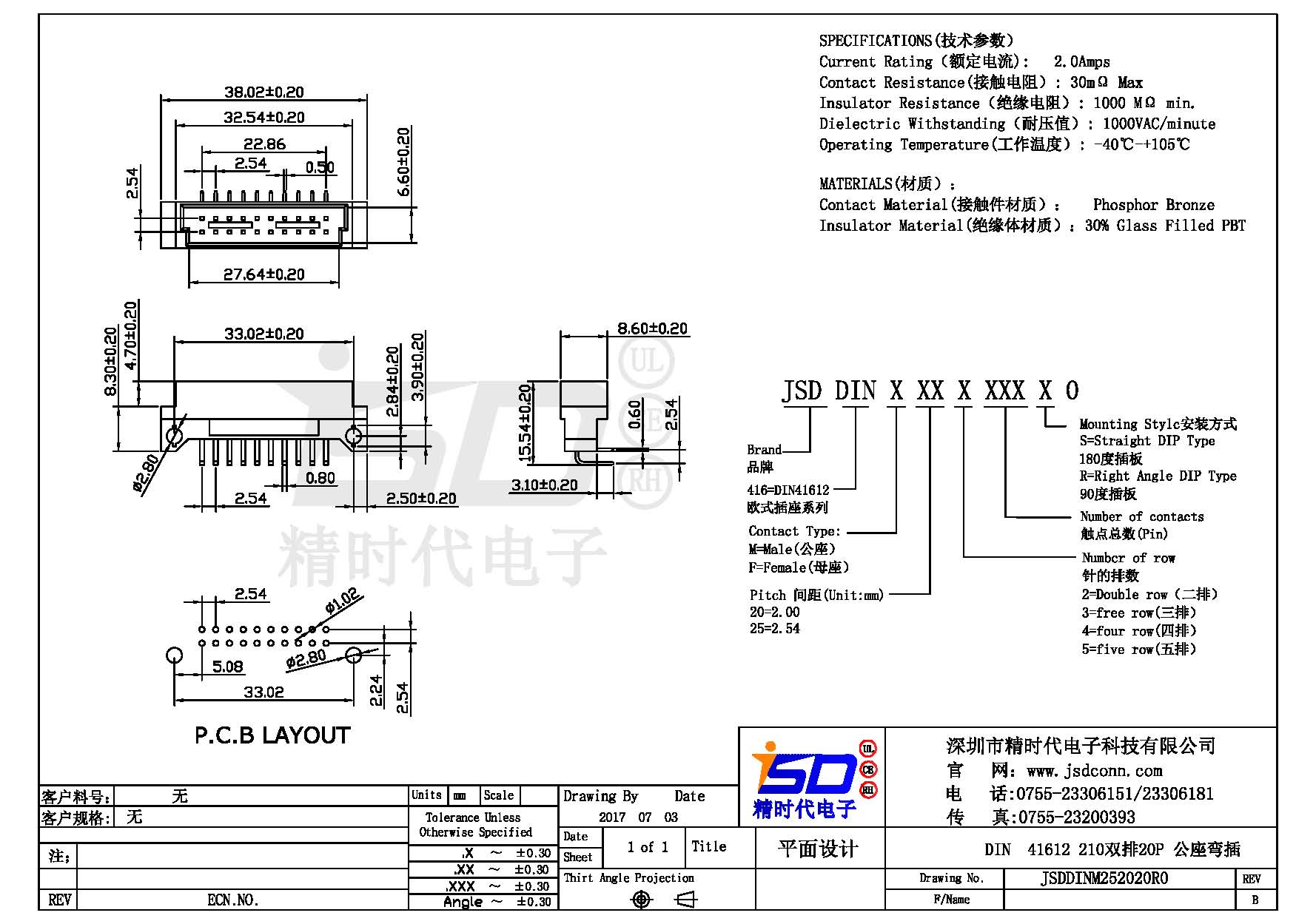 DIN 41612 Connectors Male Pitch:2.54mm 20 PIN |