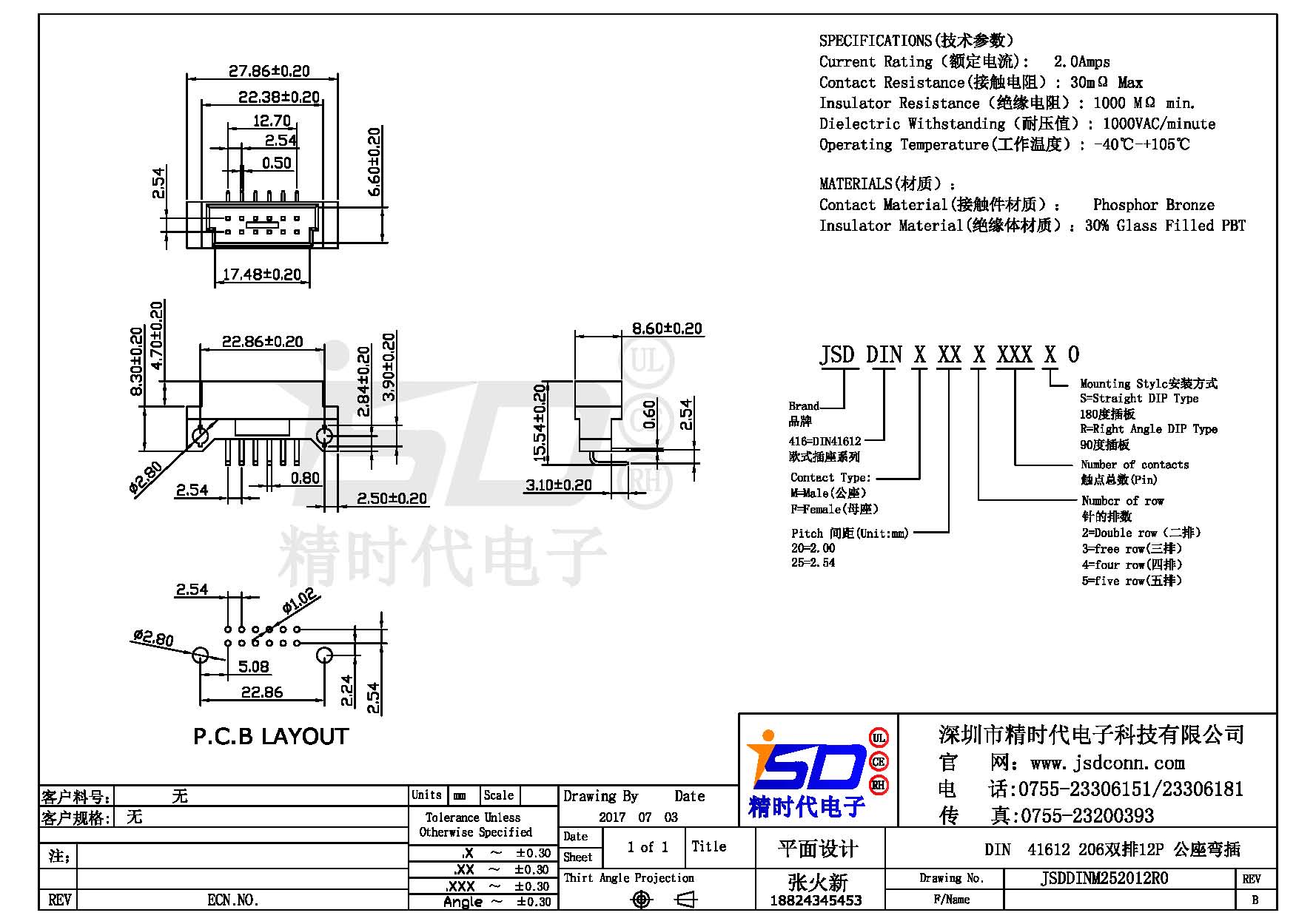 DIN 41612 Connectors Male Pitch:2.54mm 12 PIN |