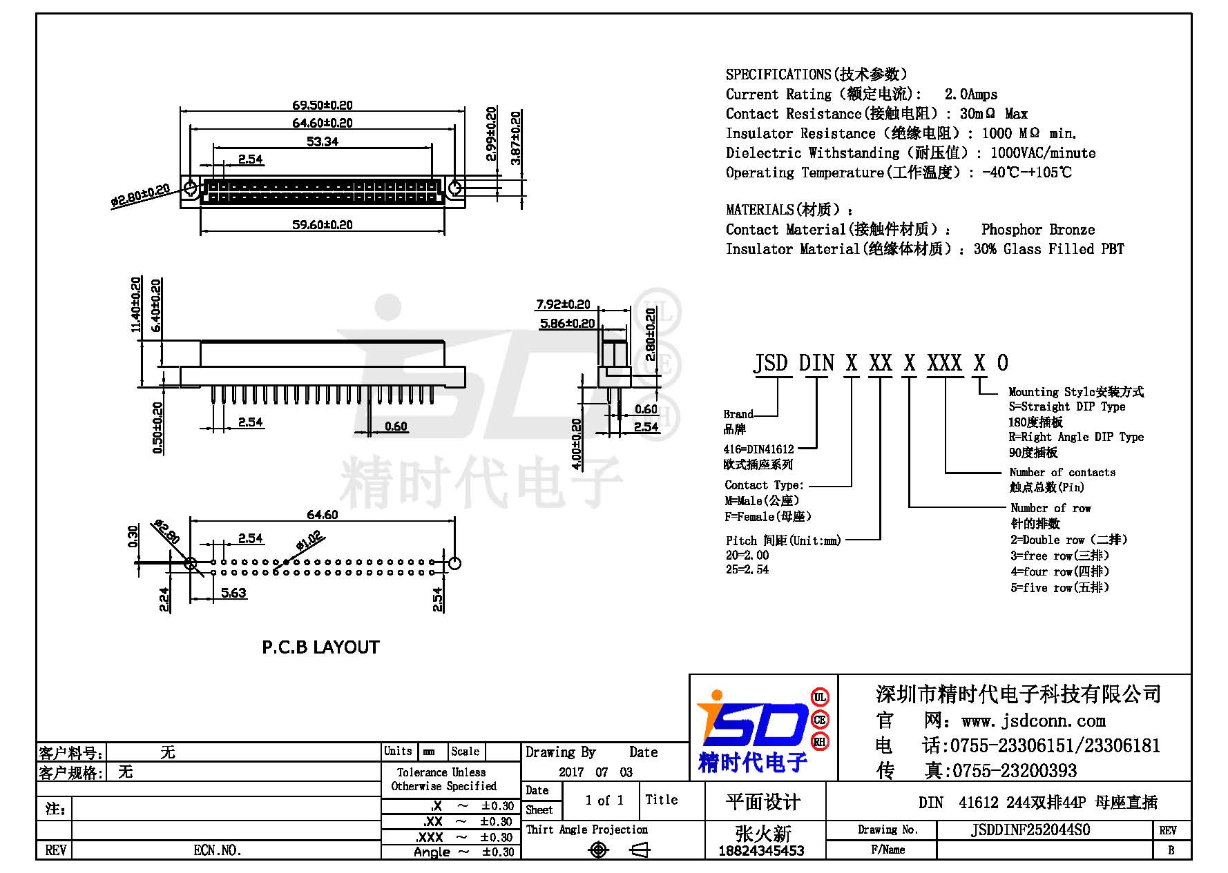 Din 41612 双排 64Pin 直公 灰白色  PBT料