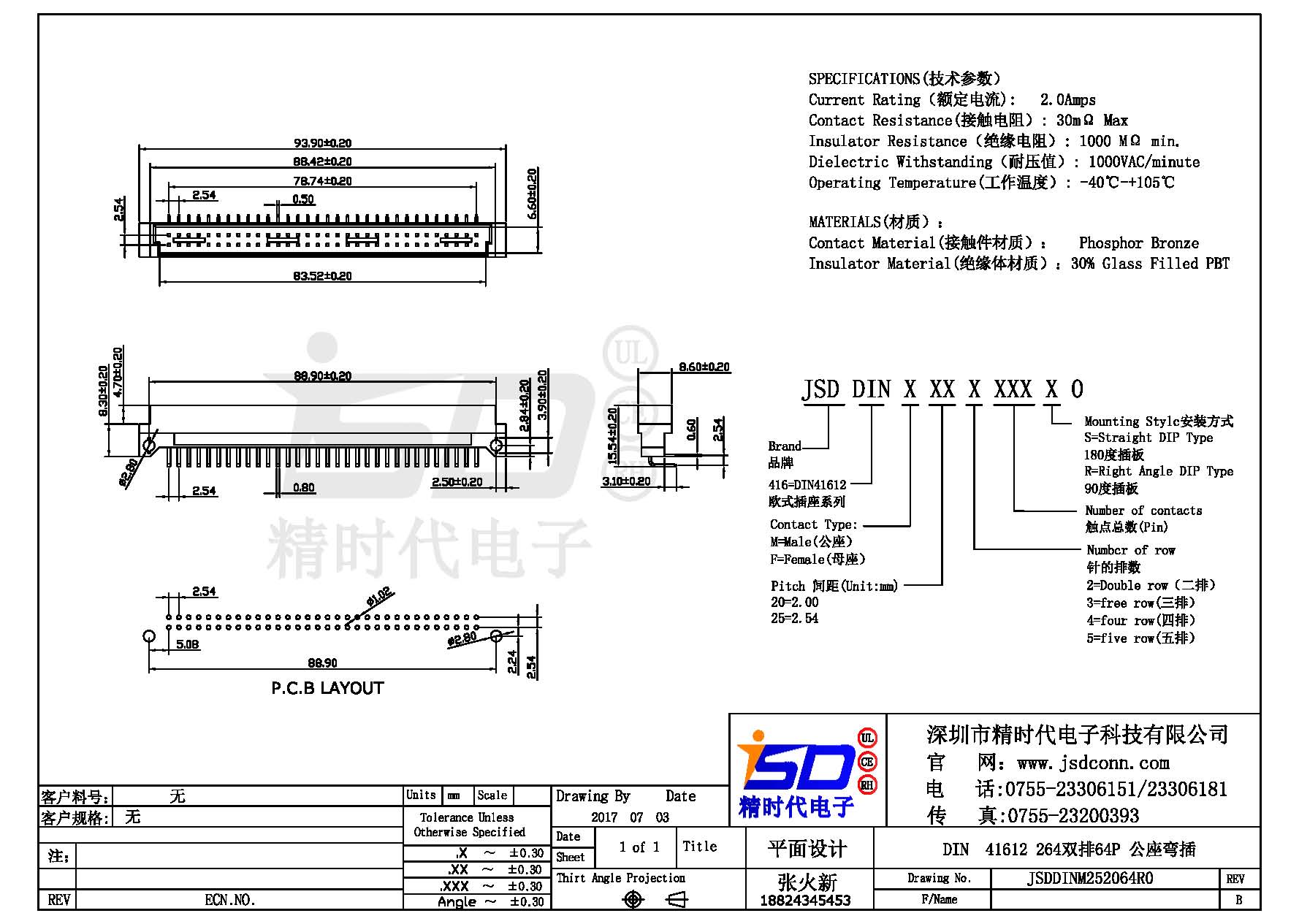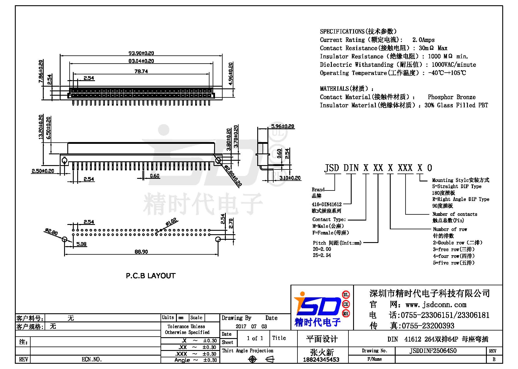 Din 41612 双排 64Pin 弯母 灰白色  PBT料