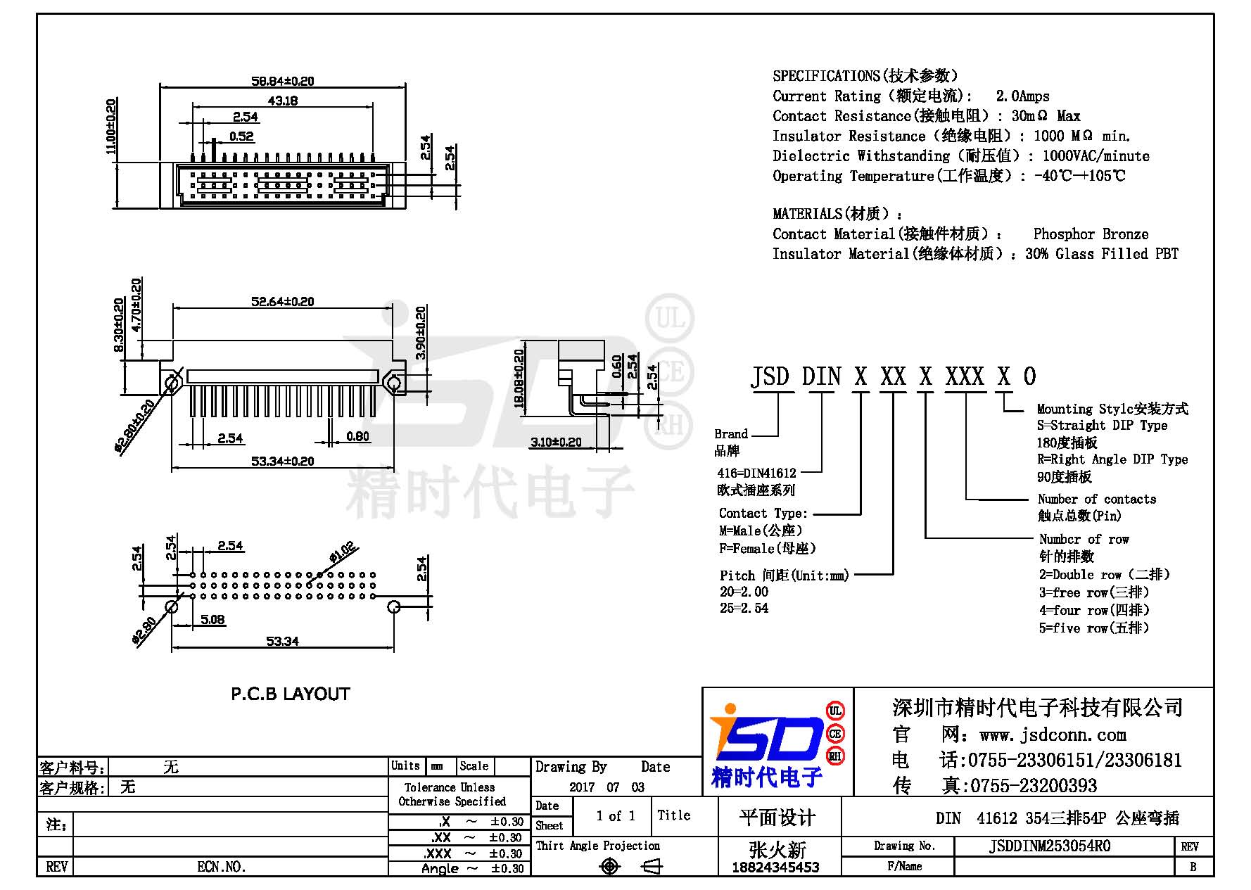 Din 41612 三排 54Pin 弯公 |