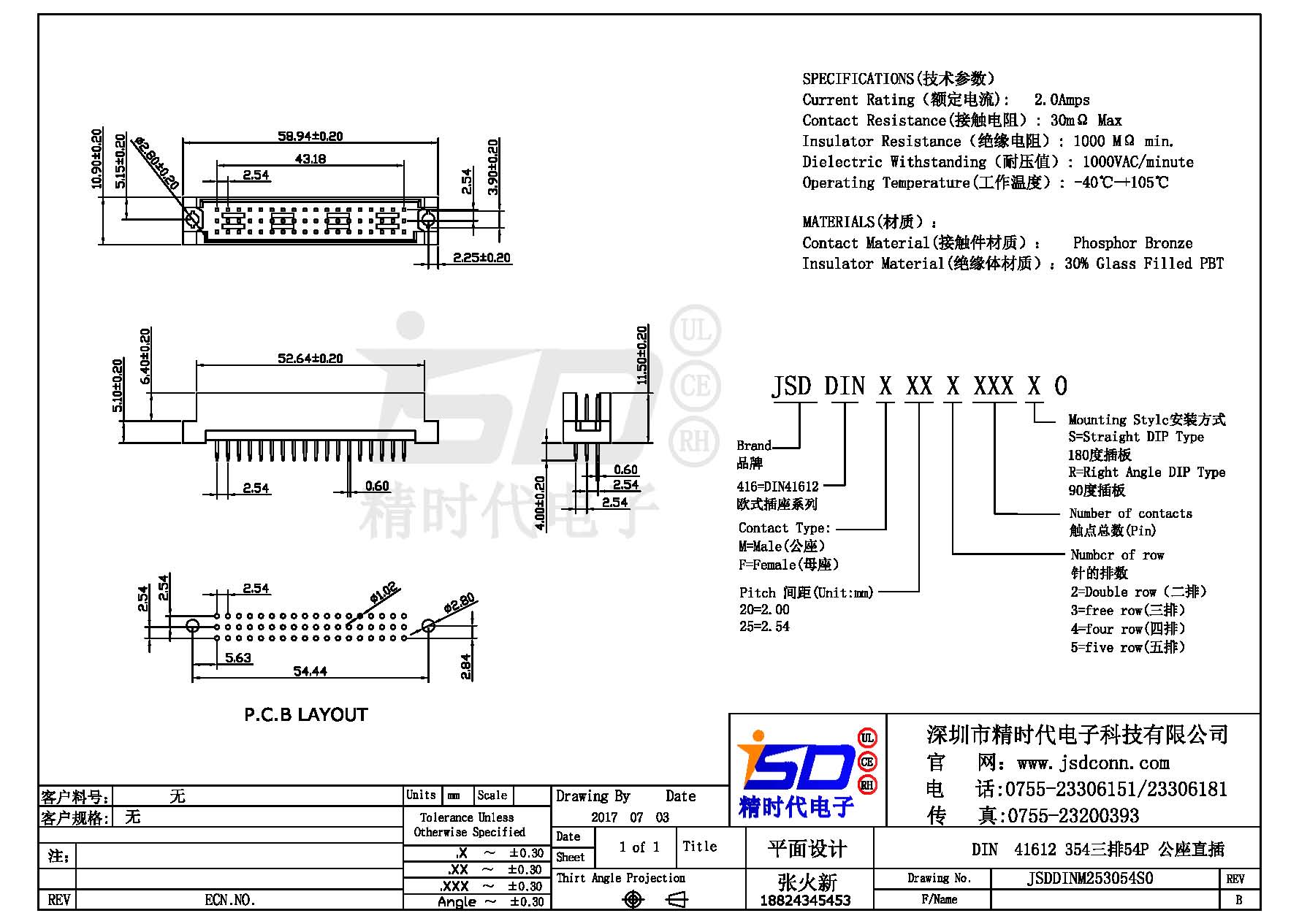 Din 41612 三排 54Pin 直母 |