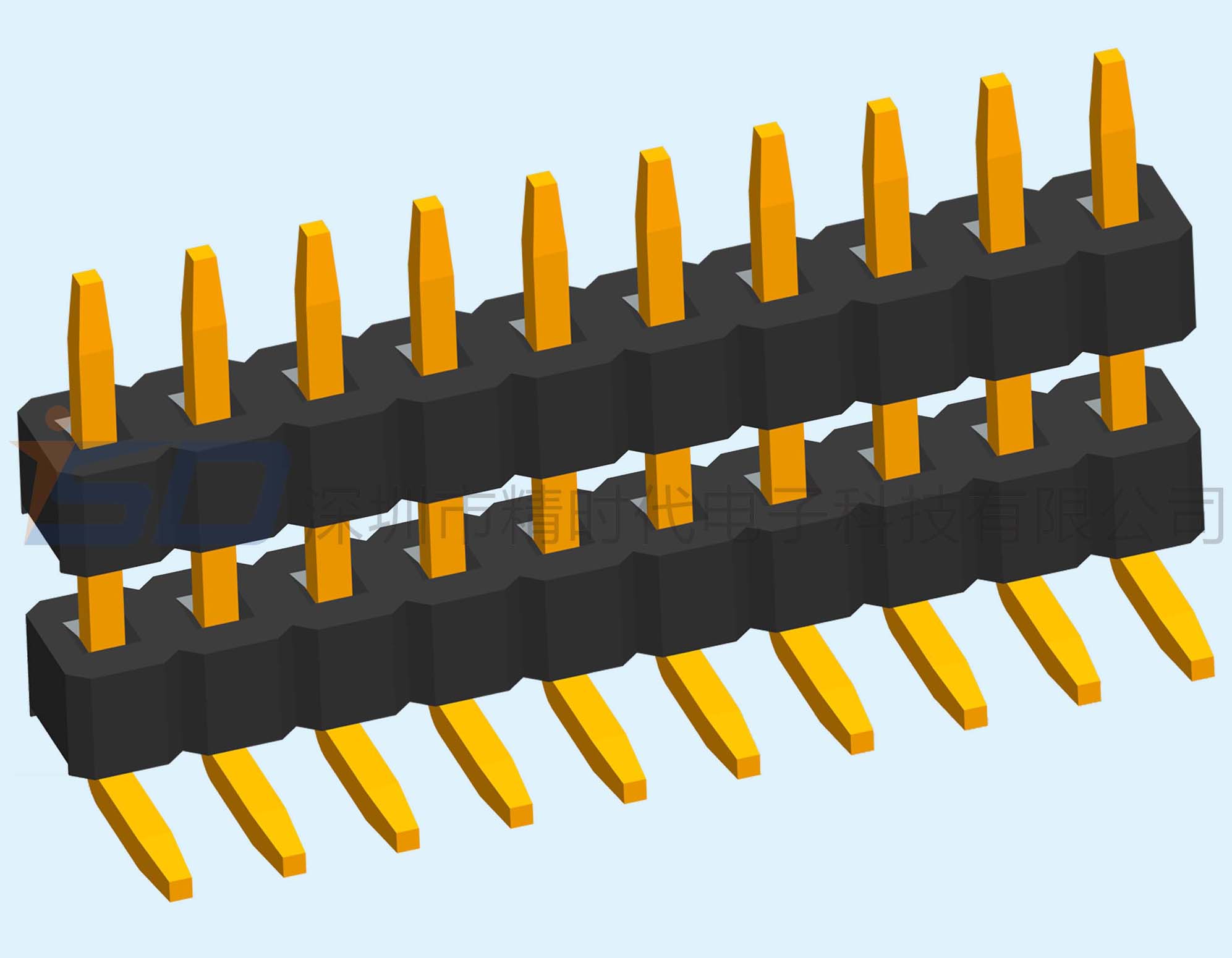 1.00mm单排双塑排针90度反弯插