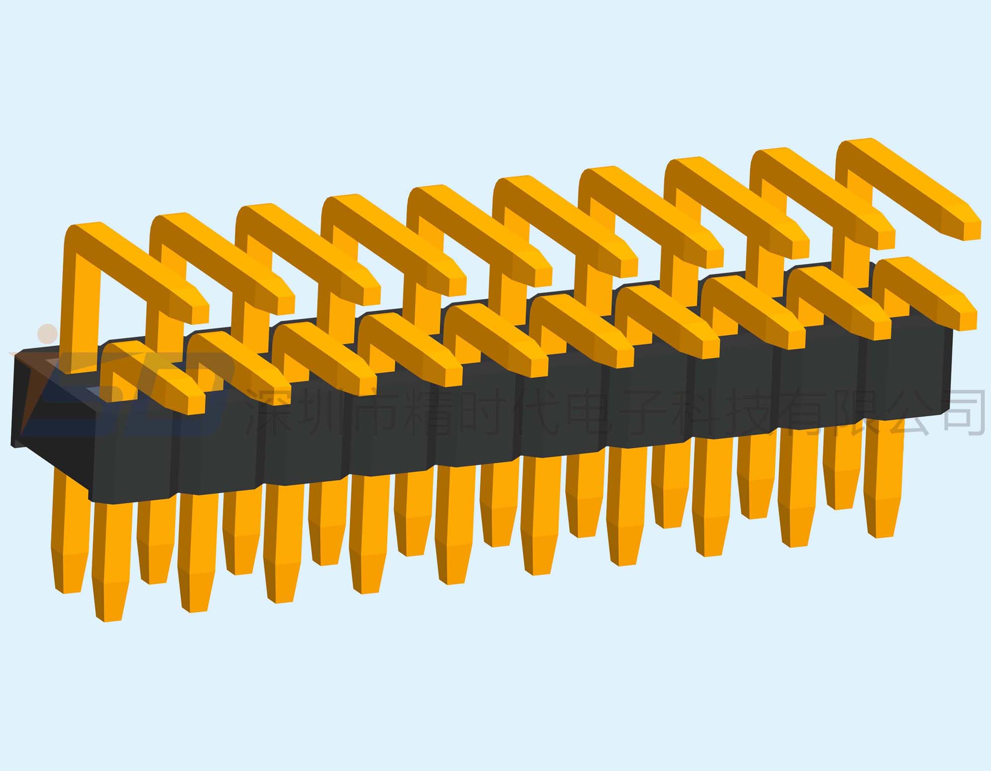 1.00mm双排单塑排针90度正弯插