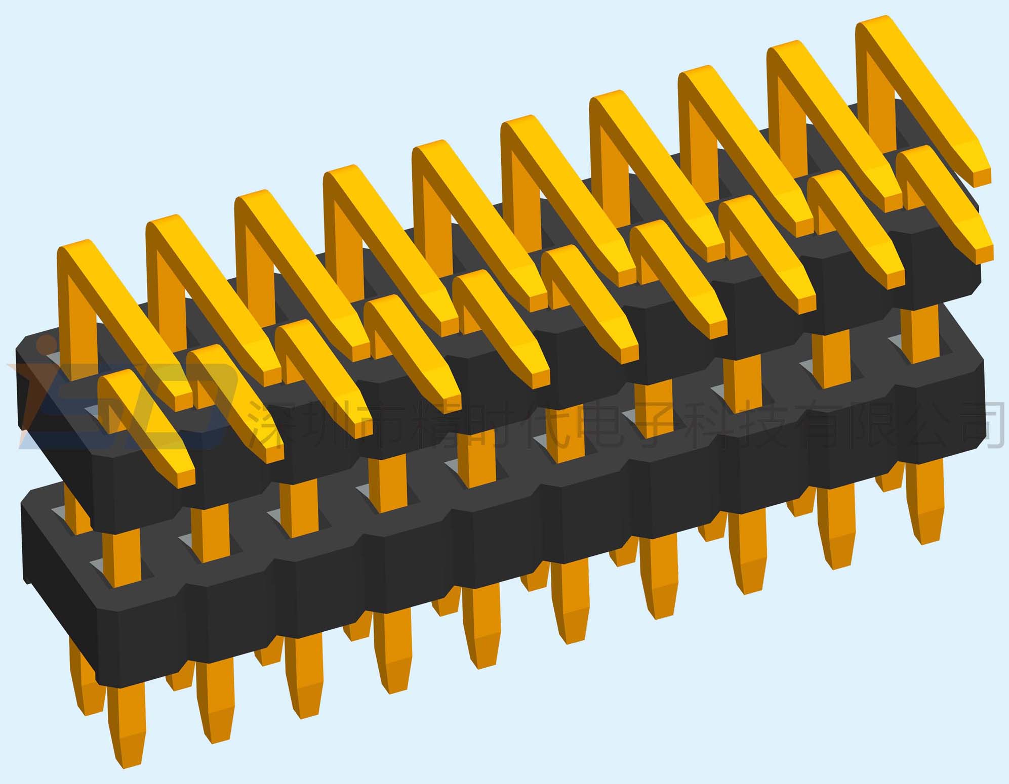 1.00mm双排双塑排针90度正弯插 塑高:1.0/1.5mm,PIN位:2*2P~2*50P