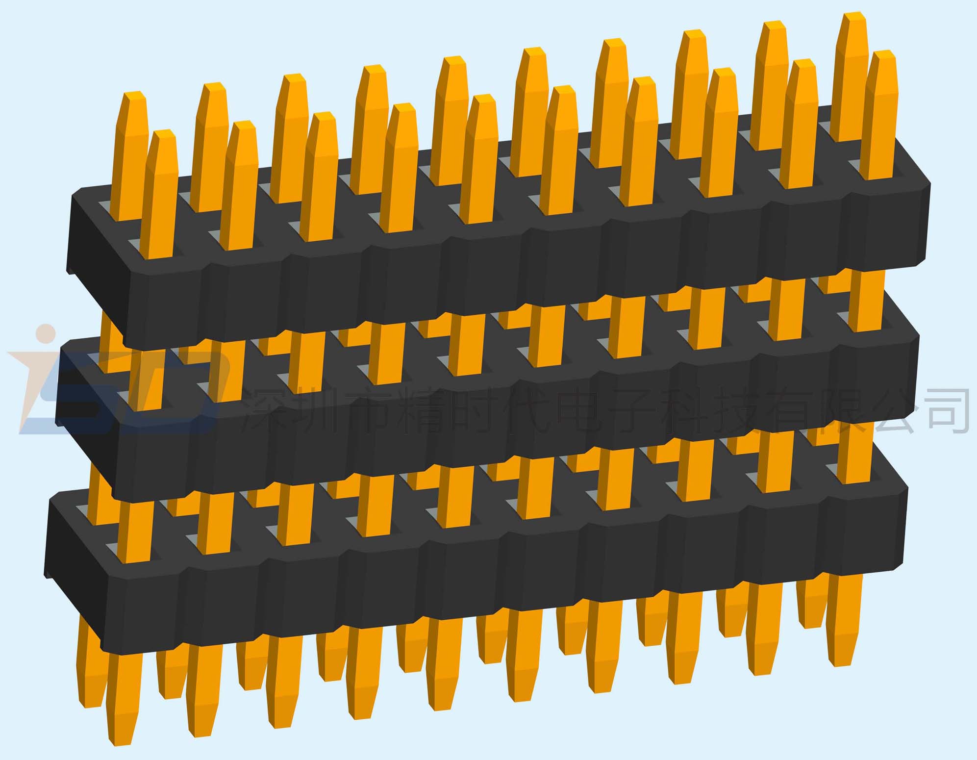1.00mm双排三塑排针180度直插 塑高:1.0/1.5mm,PIN位:2*2P~2*50P