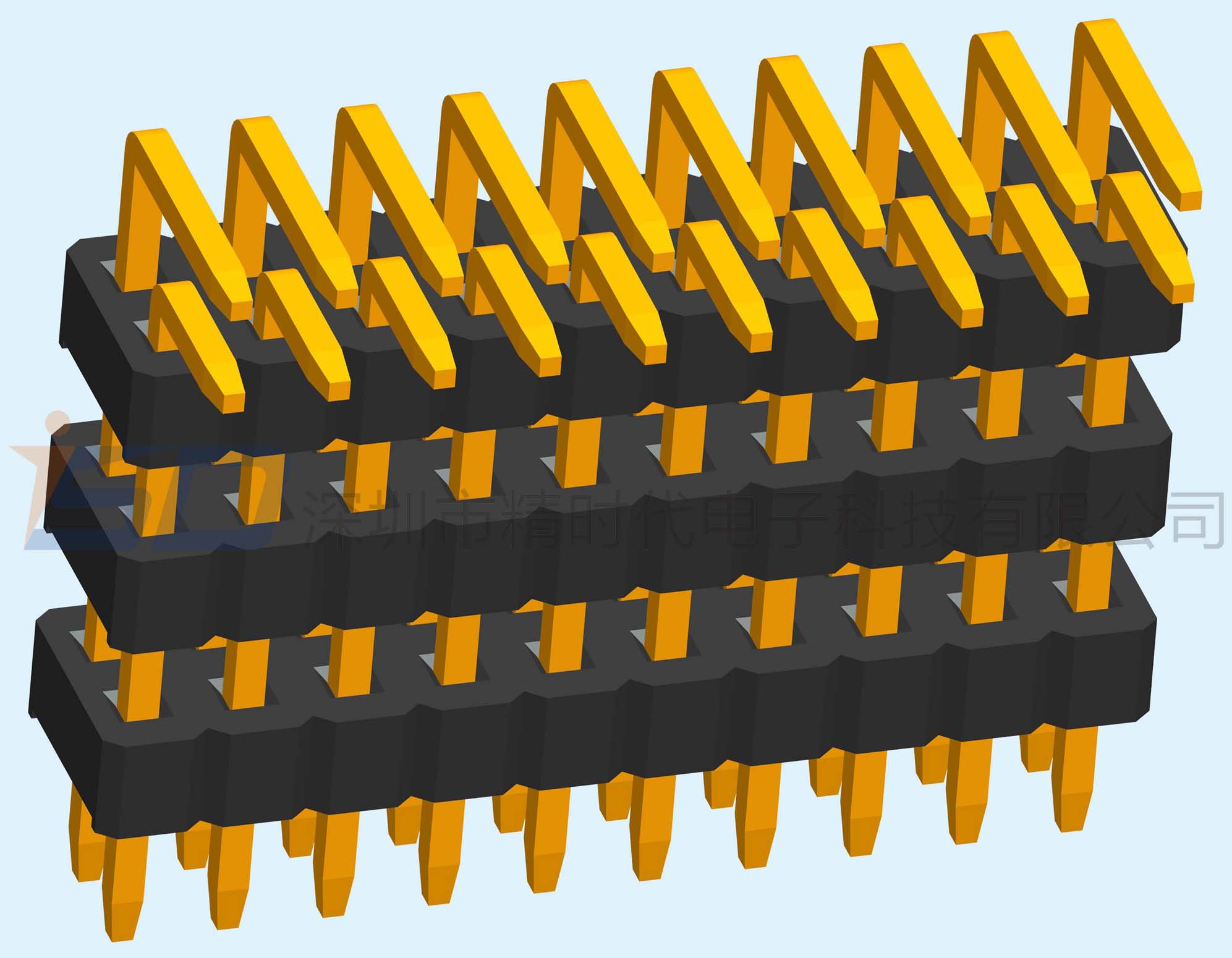 1.00mm双排三塑排针90度正弯插