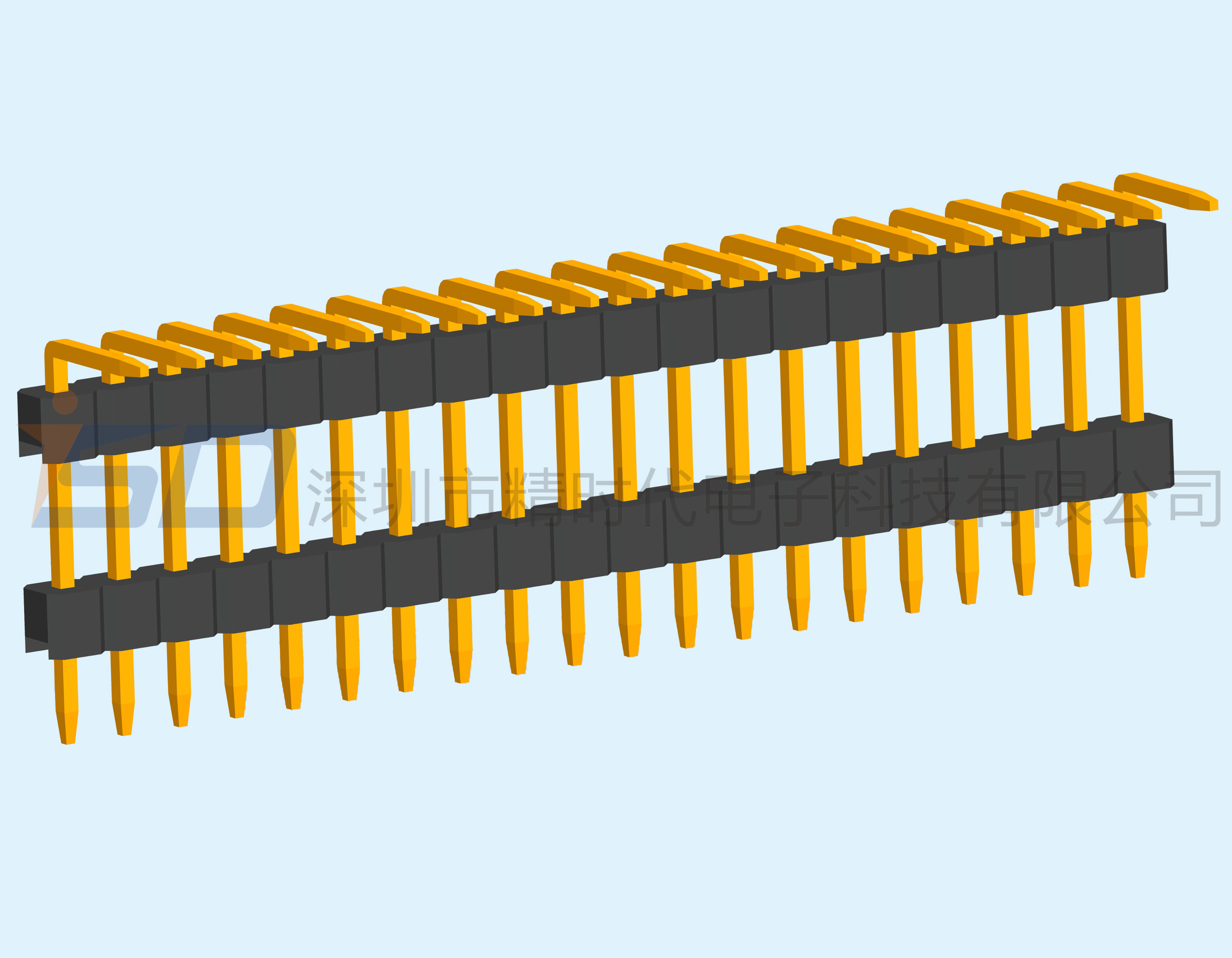 2.00mm单排双塑排针90度正弯插 塑高:2.0mm,PIN位:1*2P~1*40P