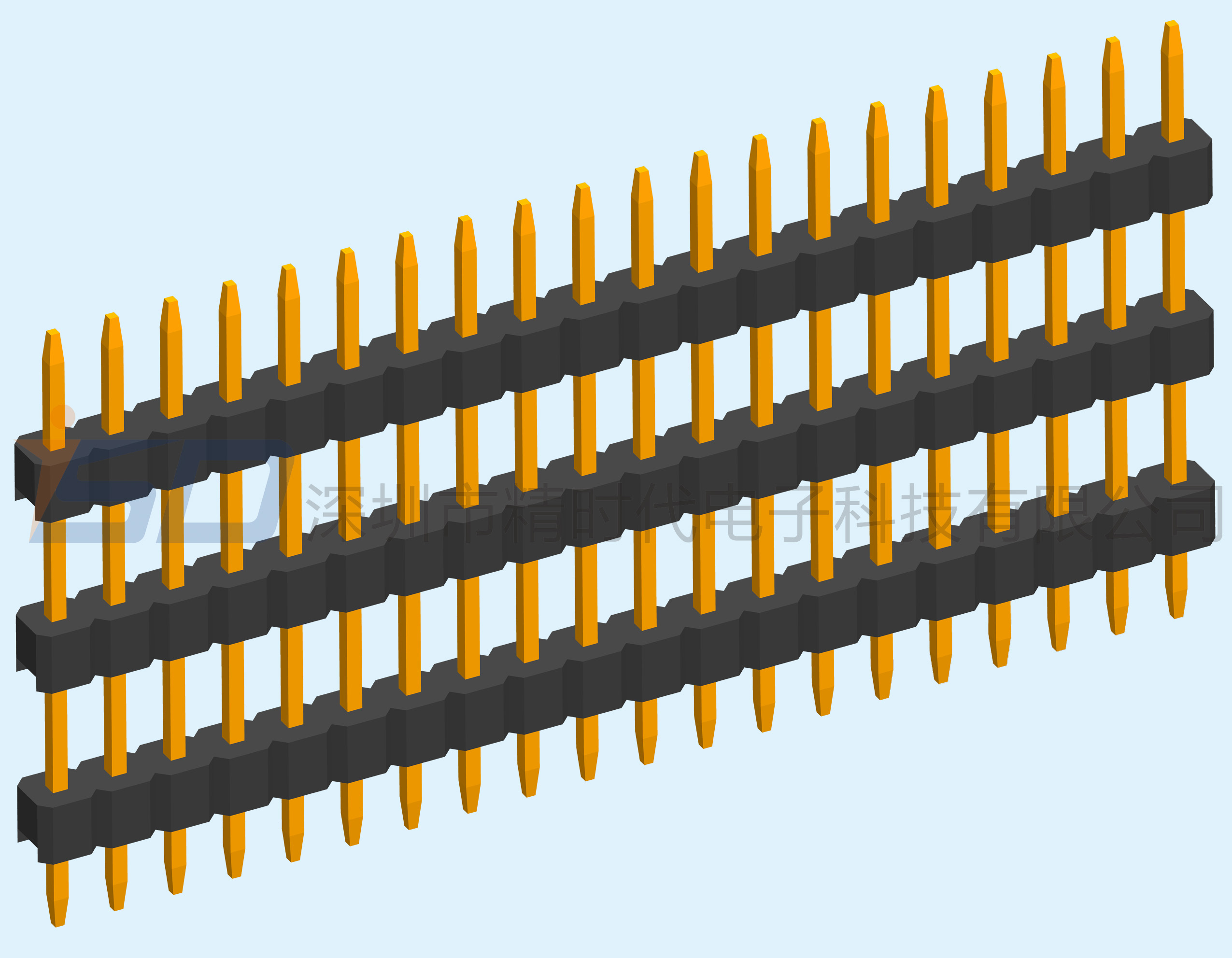 2.00mm单排三塑排针180度直插