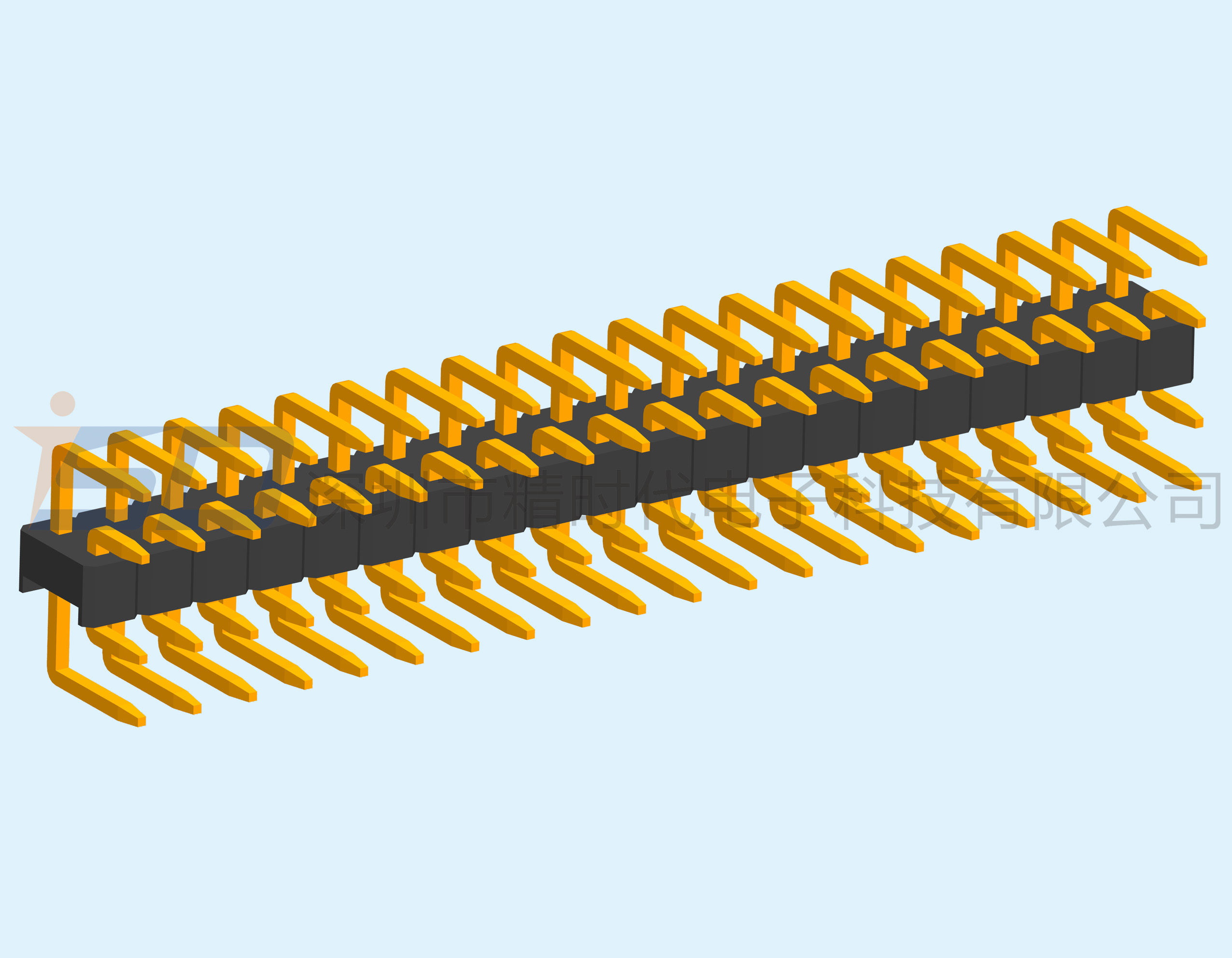 2.54mm双排单塑排针双弯蜈蚣脚 塑高:2.54mm,PIN位:2*2P~2*40P