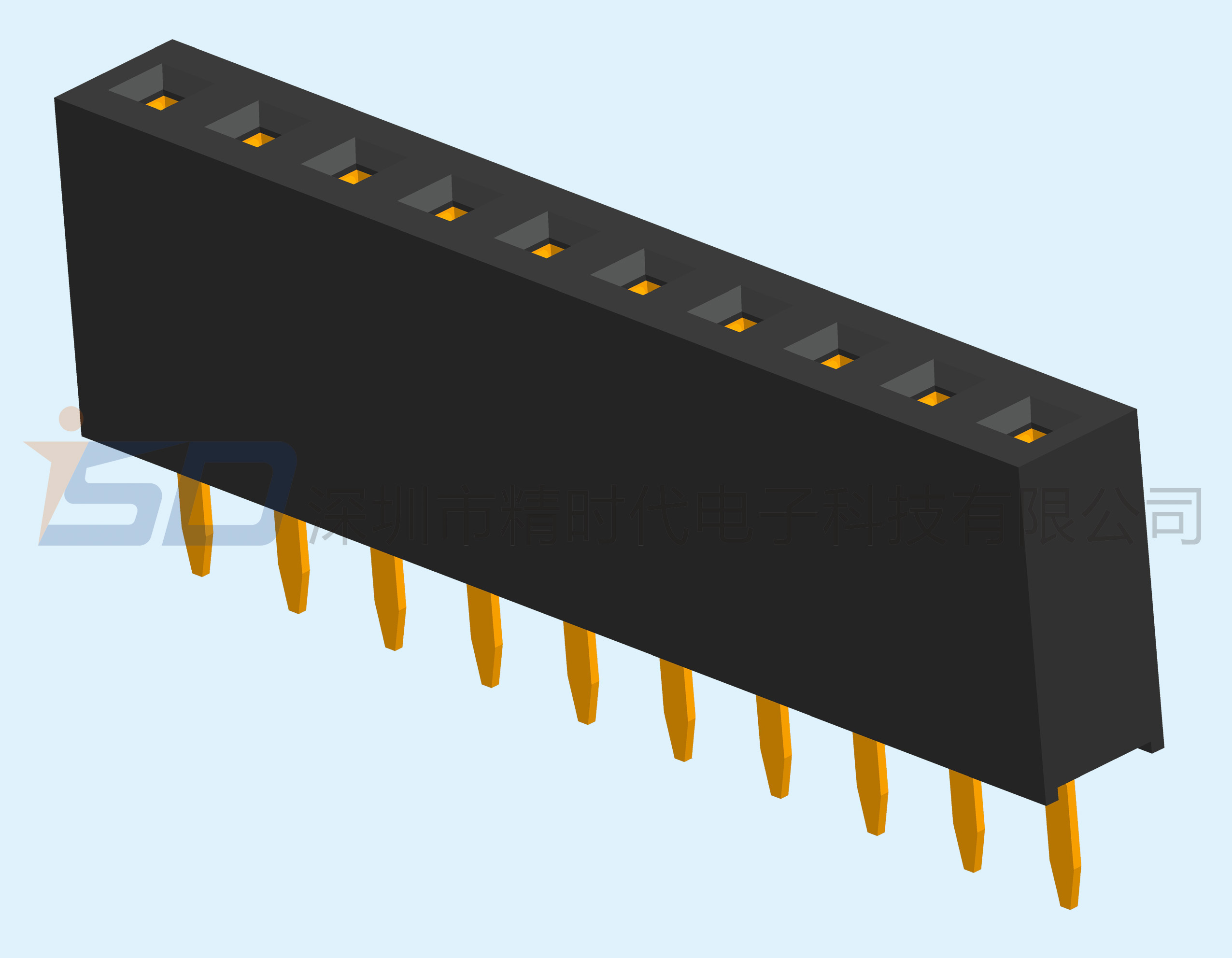 2.00mm单排排母U端180度直插 塑高:5.5mm,PIN位:1*2~1*40P