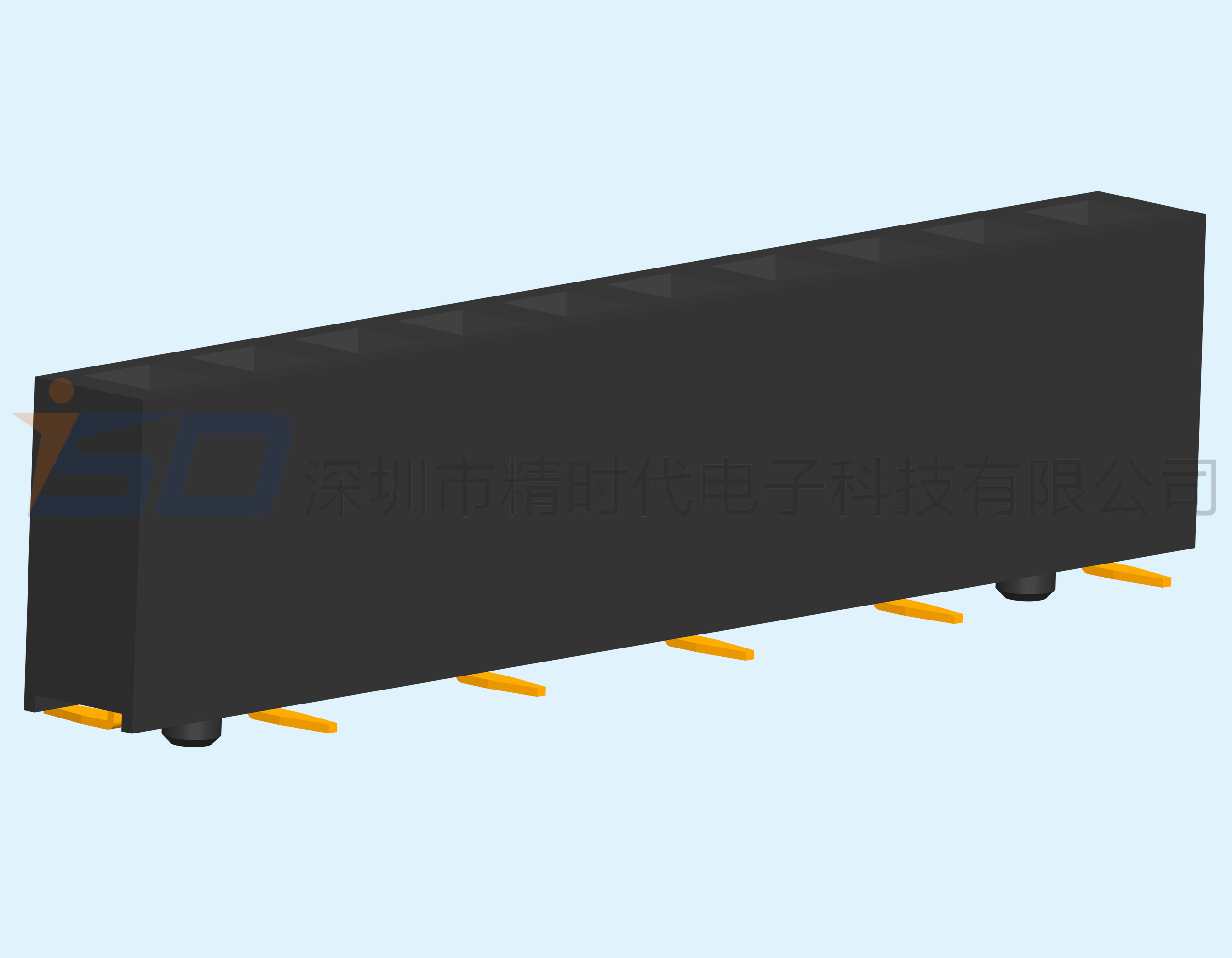 2.54mm单排排母U端SMT立贴带内定位柱 塑高:5.7mm,PIN位:1*2P~1*40P