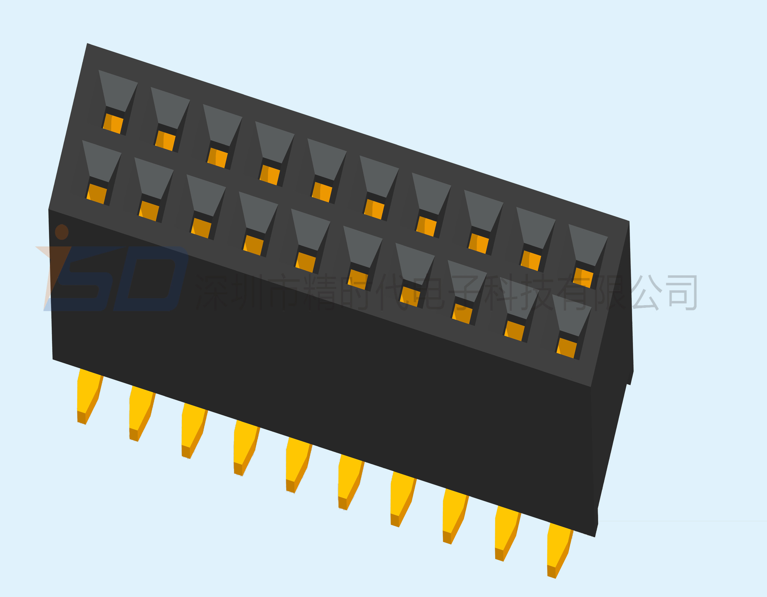1.27mm双排排母U端SMT立贴 塑高:2.2mm ,PIN位:2*2P~2*50P