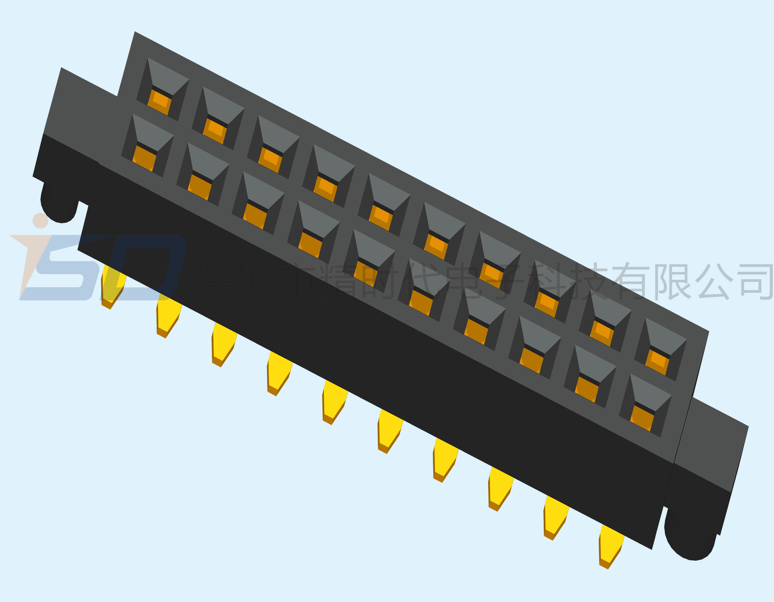 1.27mm双排排母U端SMT立贴带外定位柱