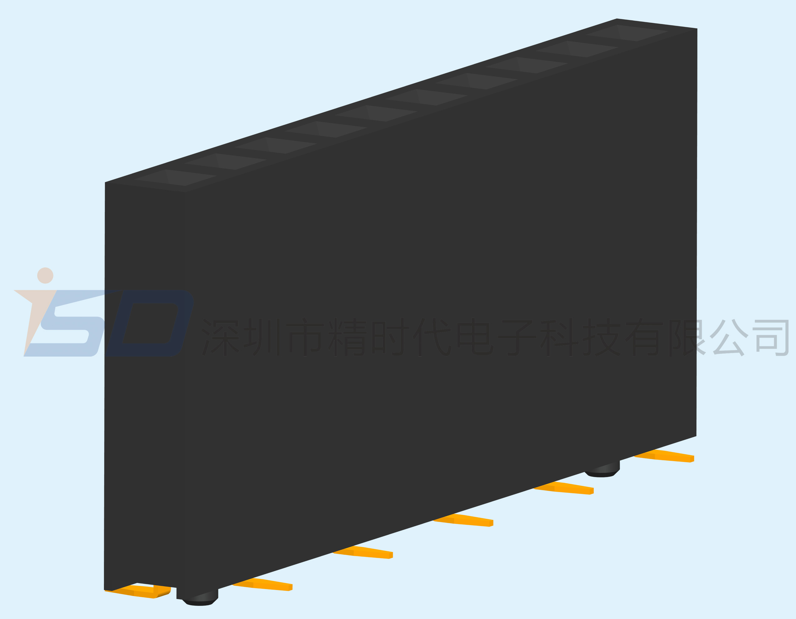 2.54mm单排排母U端SMT立贴带内定位柱 塑高:11.0mm,PIN位:1*2P~1*40P