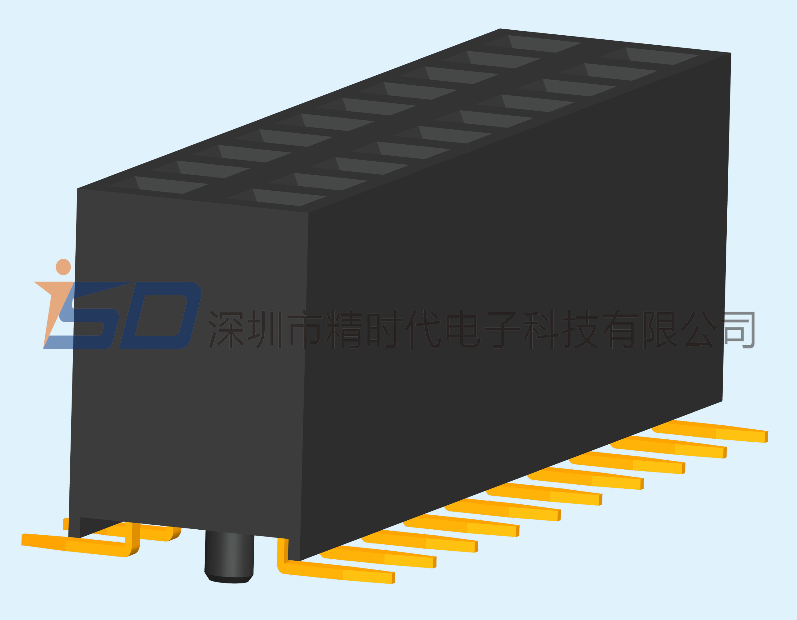 2.54mm双排排母U端SMT立贴带内定位柱 塑高:5.0mm,PIN位:2*2P~2*40P