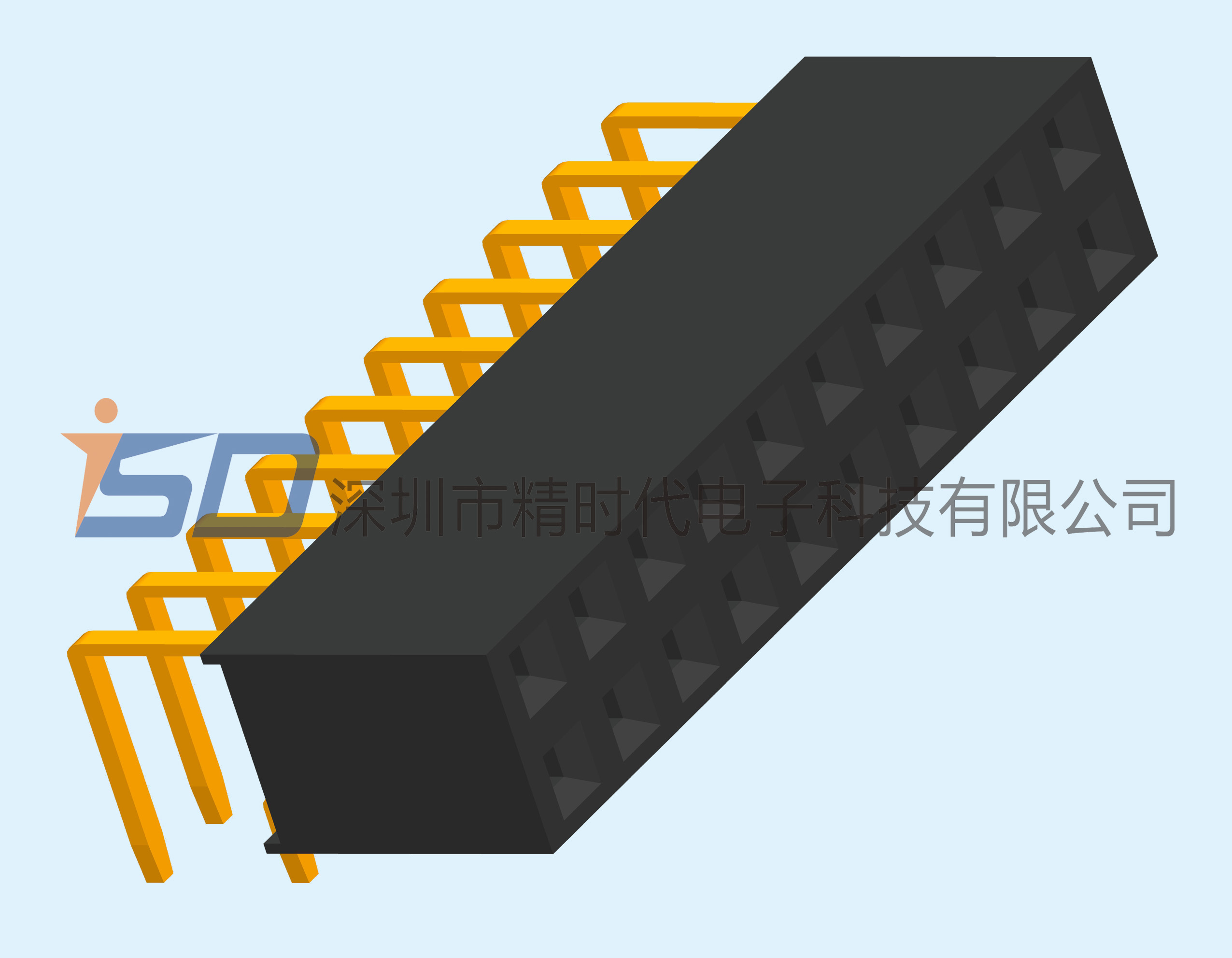 2.54mm双排排母O端90度弯插 塑高:5.0mm,PIN位:2*2P~2*40P