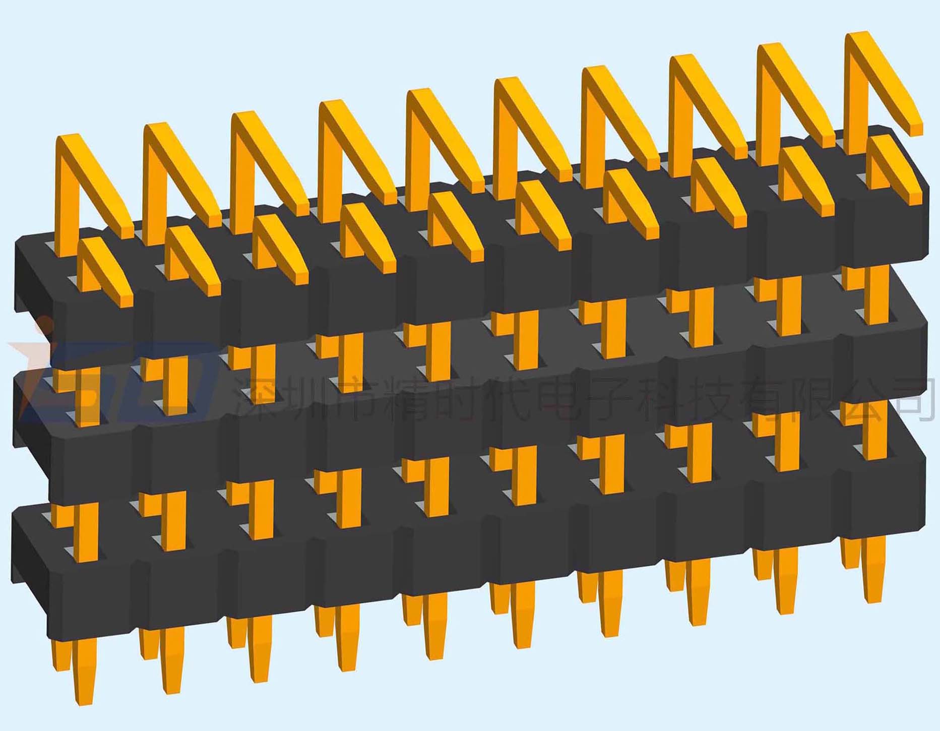 3.00mm双排三塑排针90度正弯插