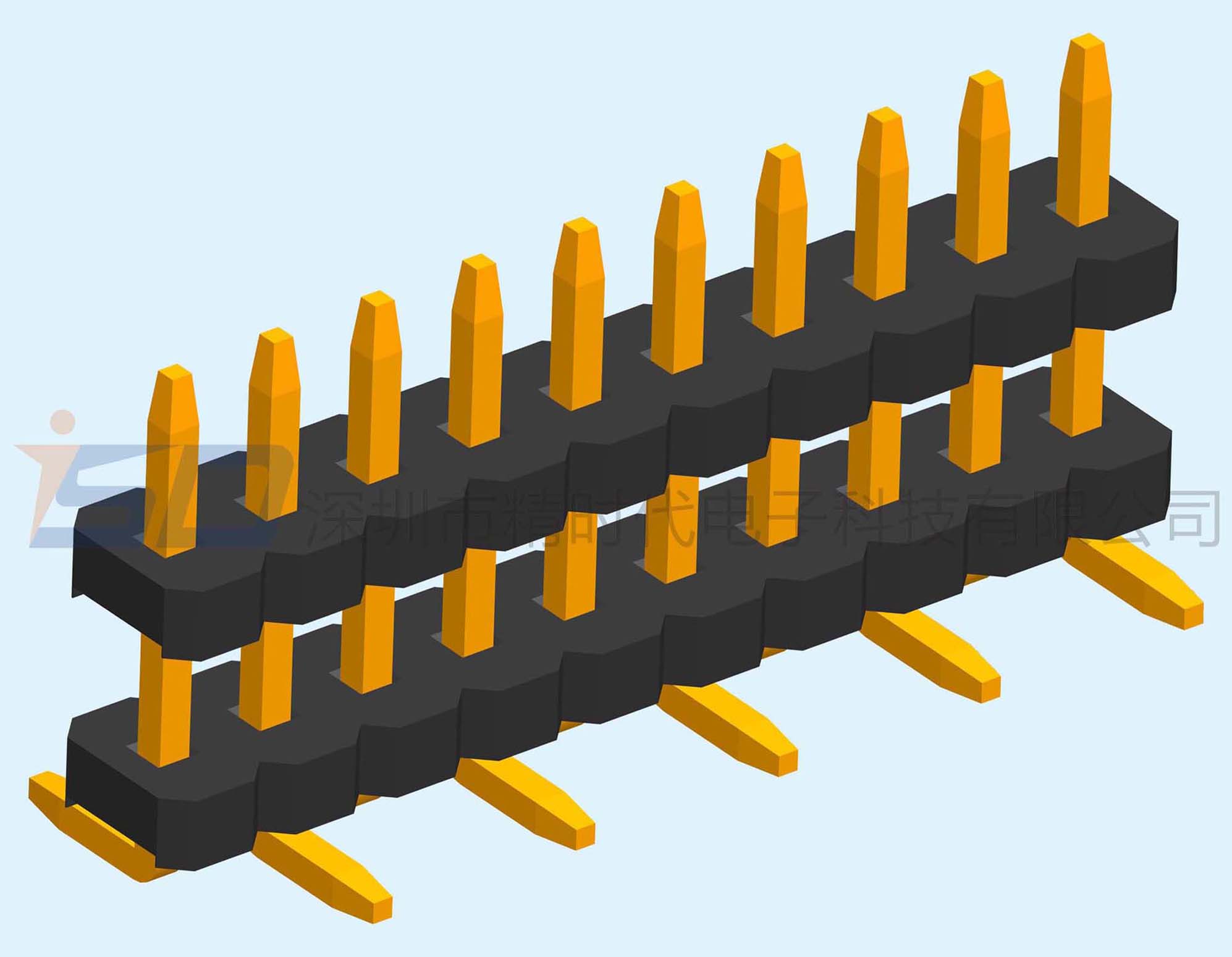 3.96mm单排双塑排针SMT立贴 塑高:2.50mm,PIN位:1*2P~1*40P