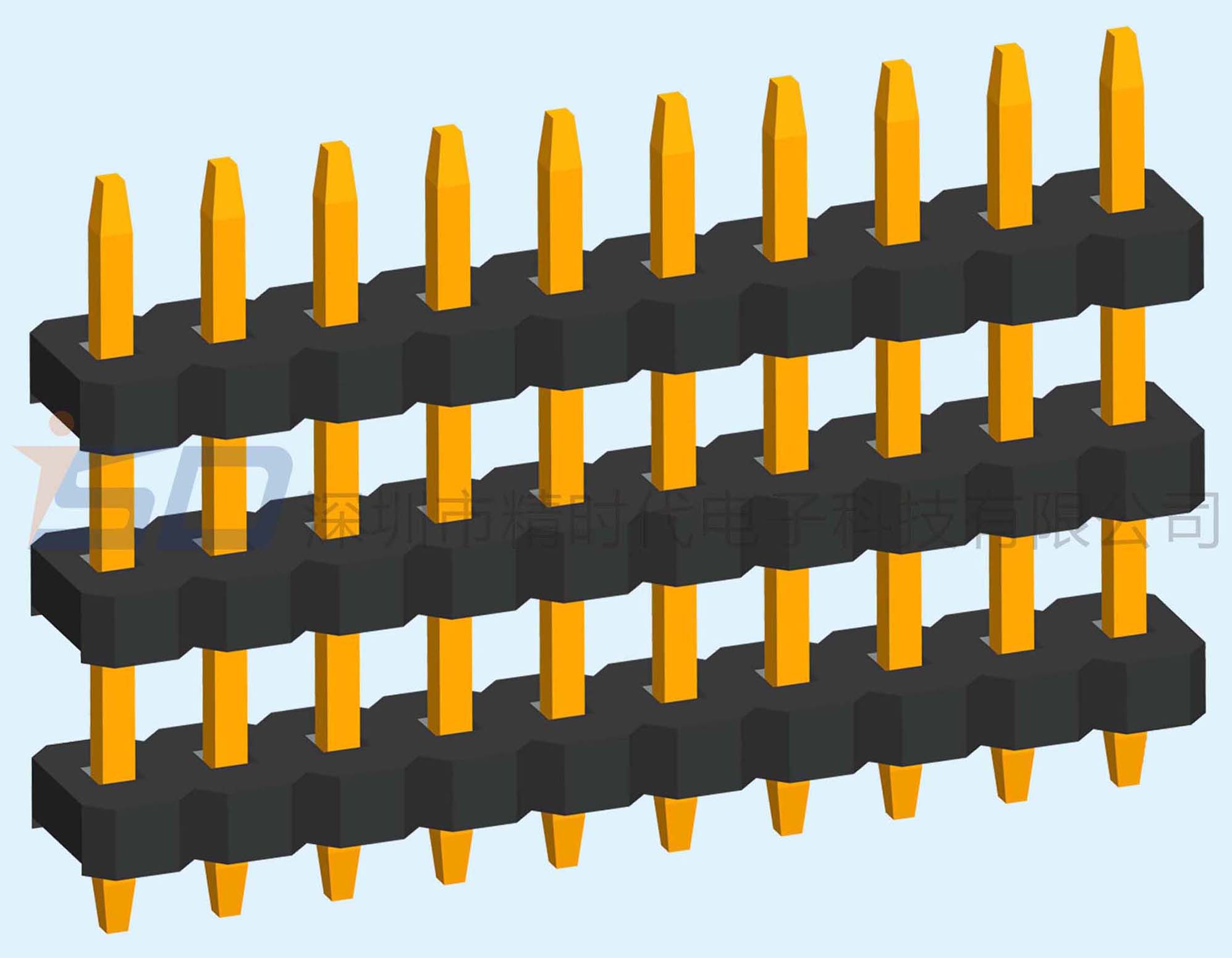 3.96mm单排三塑排针180度直插