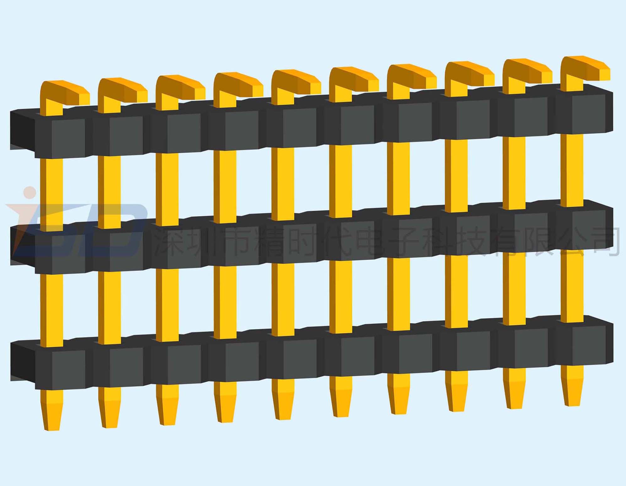 3.96mm单排三塑排针90度正弯插 塑高:2.50mm,PIN位:1*2P~1*40P