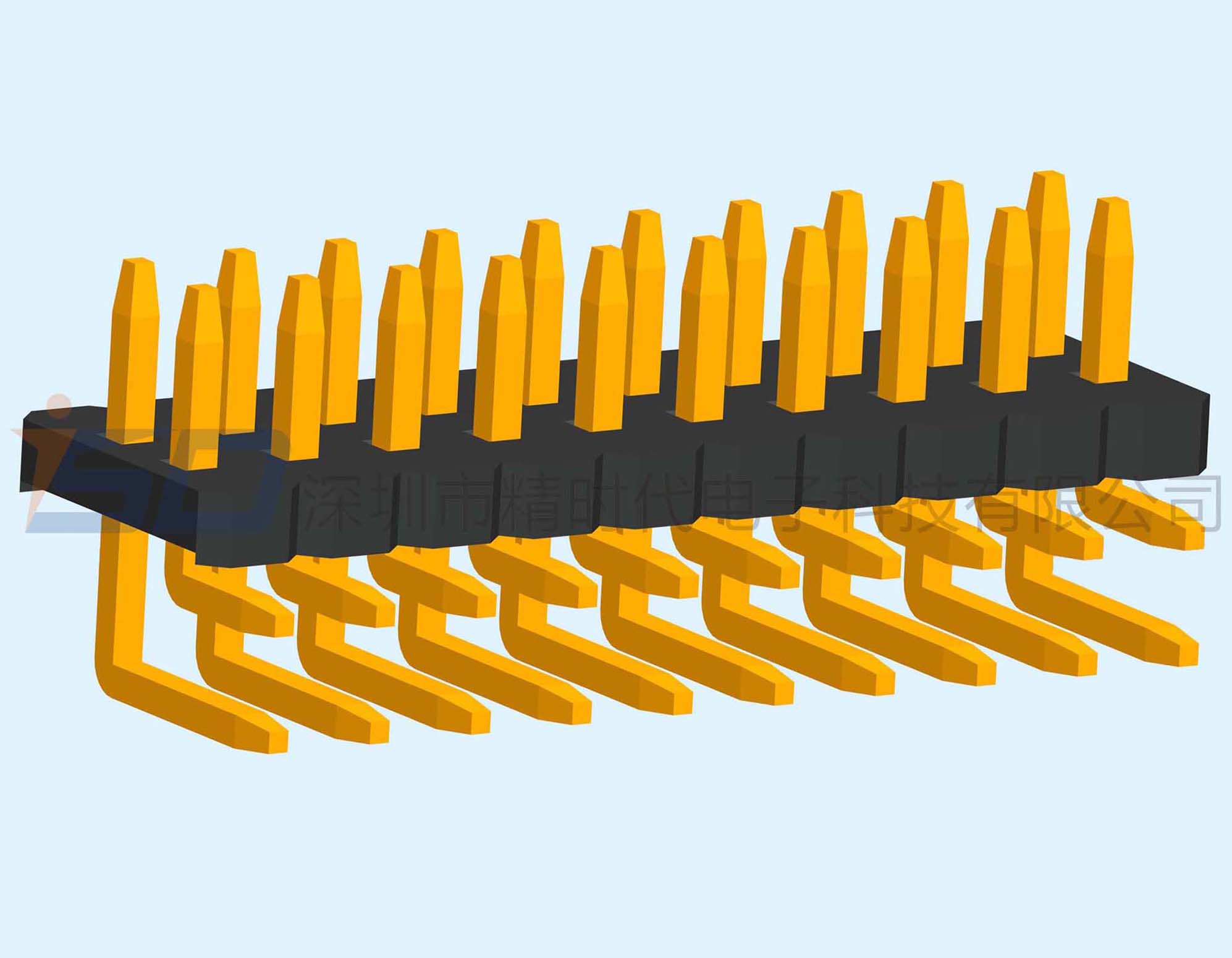 3.96mm双排单塑排针90度反弯插 塑高:2.50mm,PIN位:2*2P~2*40P