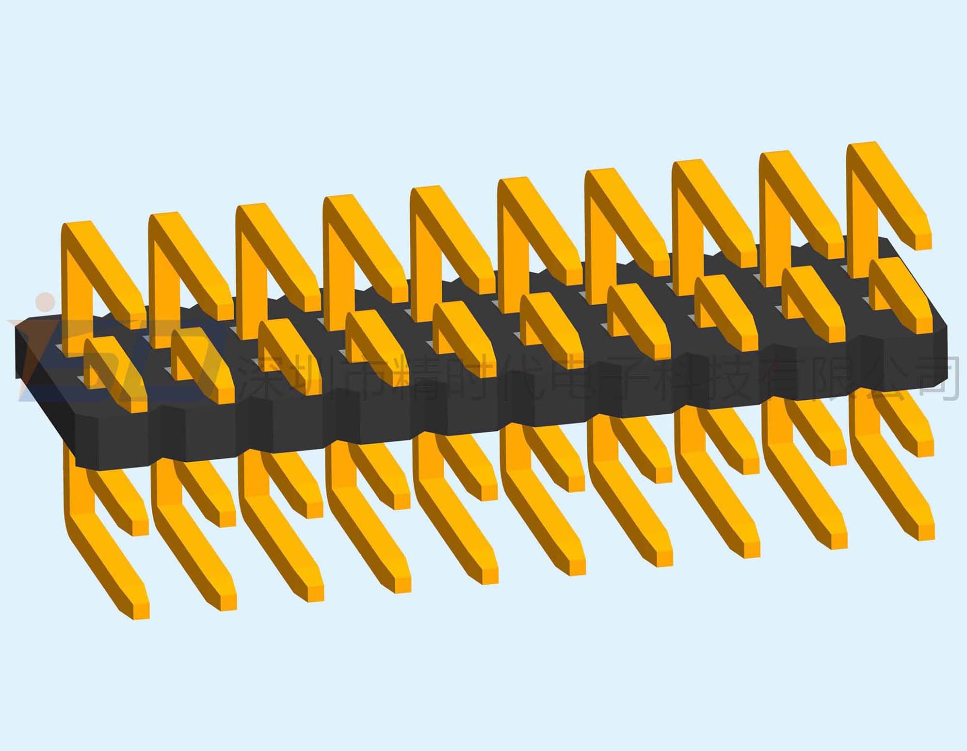 3.96mm双排单塑排针双弯蜈蚣脚 塑高:2.50mm,PIN位:2*2P~2*40P