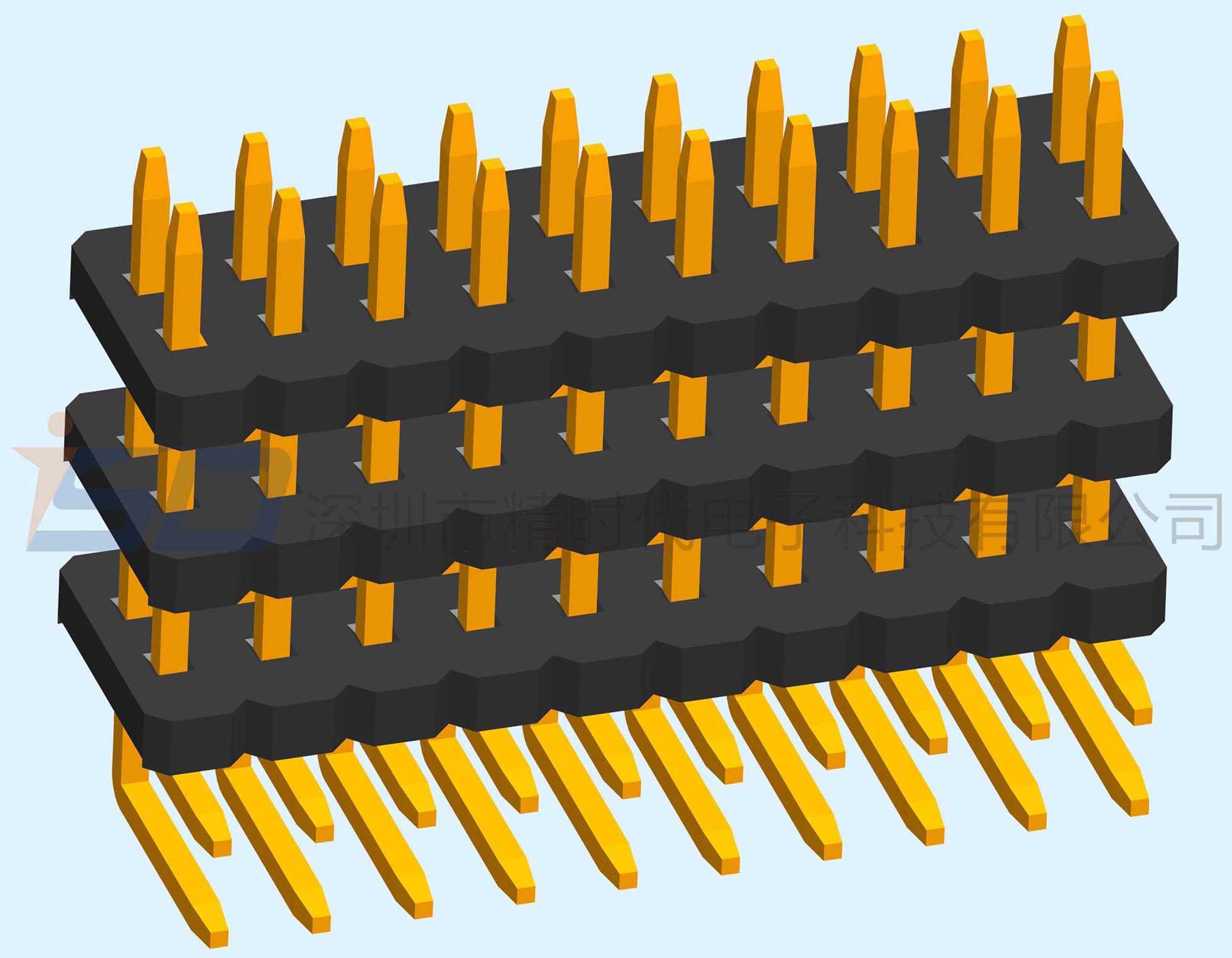 4.20mm双排三塑排针90度反弯插 塑高:2.54mm,PIN位:2*2P~2*40P