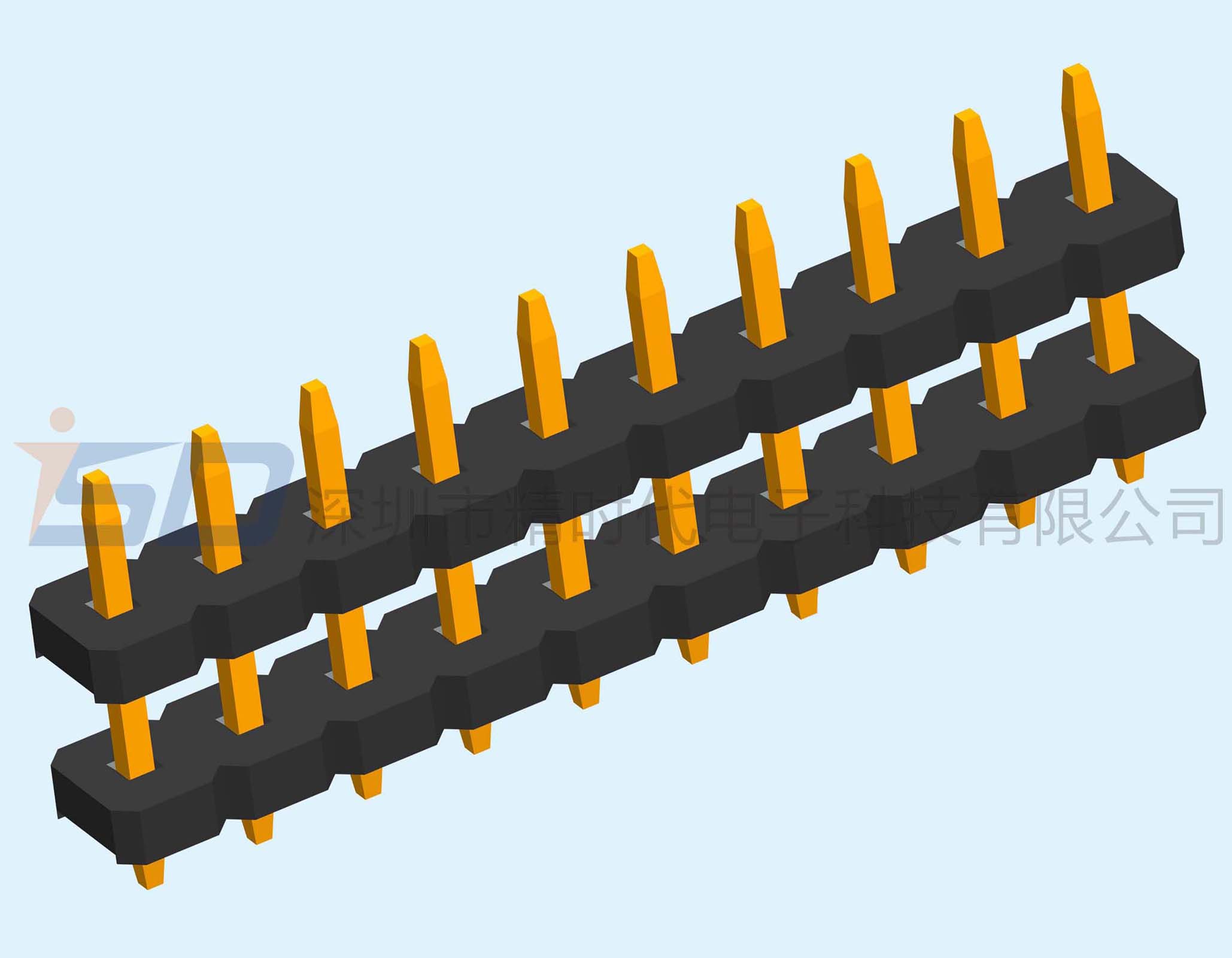 5.08mm单排双塑排针180度直插