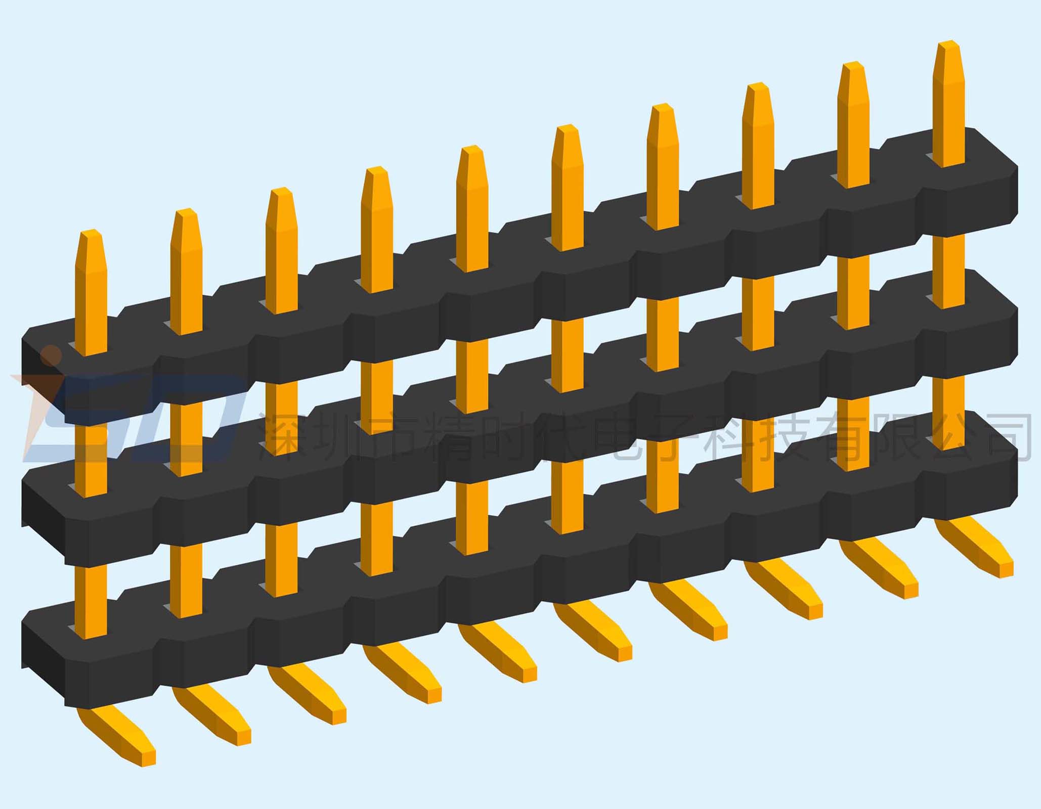 5.08mm单排三塑排针90度反弯插